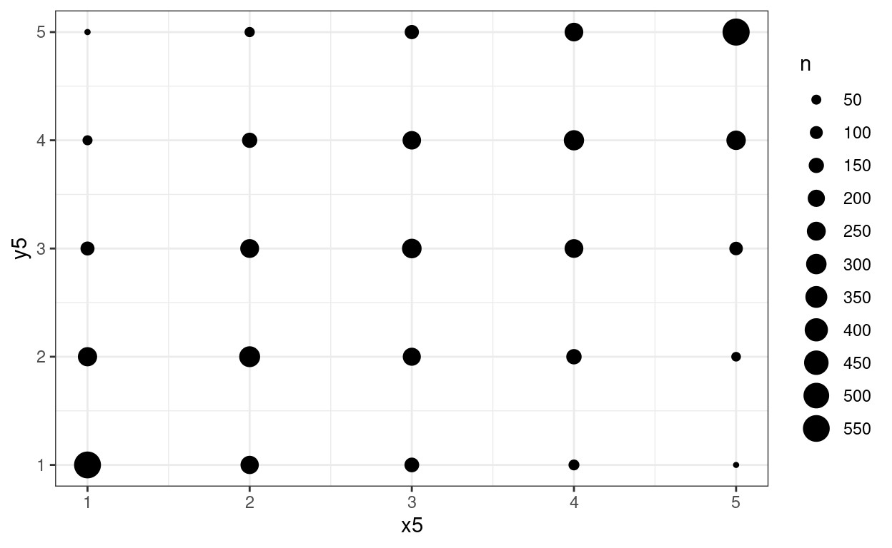 geom_count()And another approach, good when values are widely spaced as here, is geom_count().