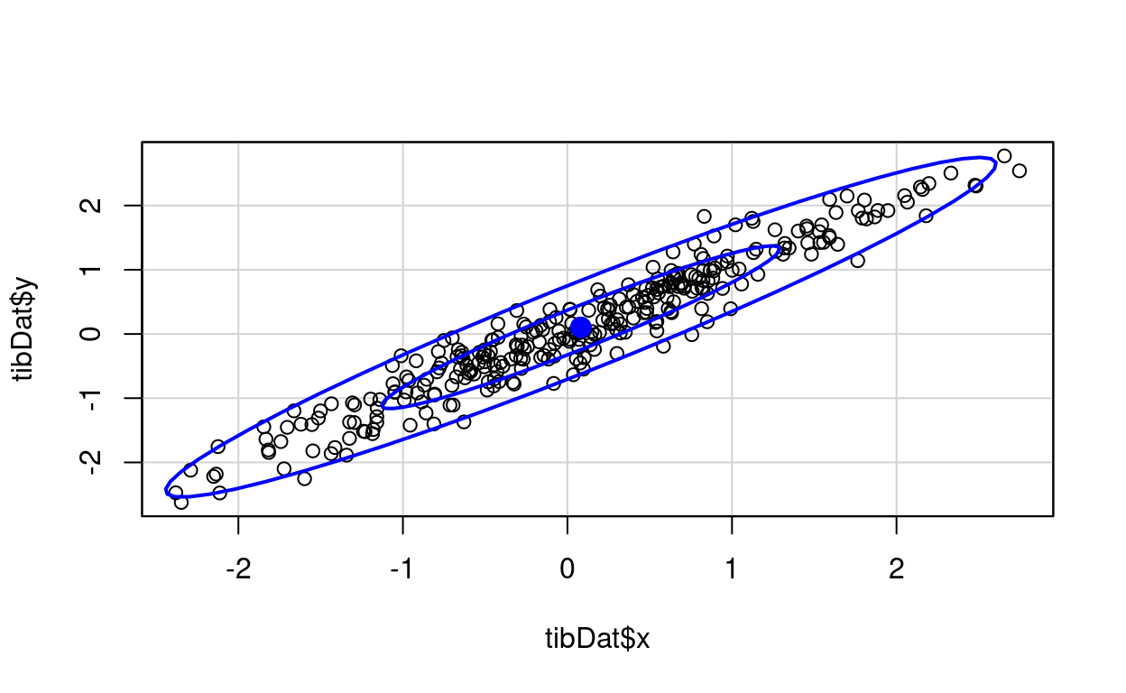 car::dataEllipse(tibDat$x, tibDat$y) -> retDat # collect up data for the lines