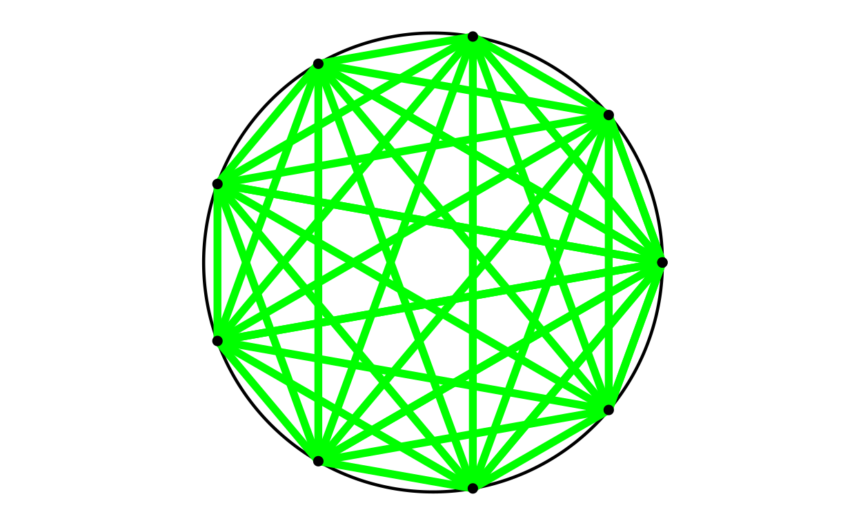 Quite pretty, I like the way that the centre is empty for odd numbers of points and a star for even numbers of points.