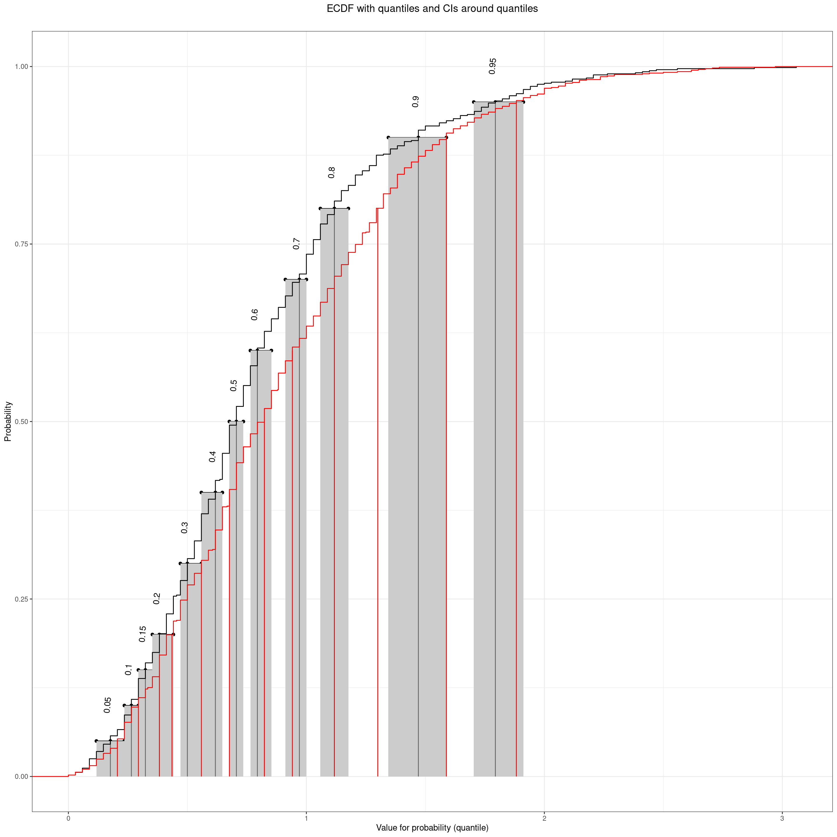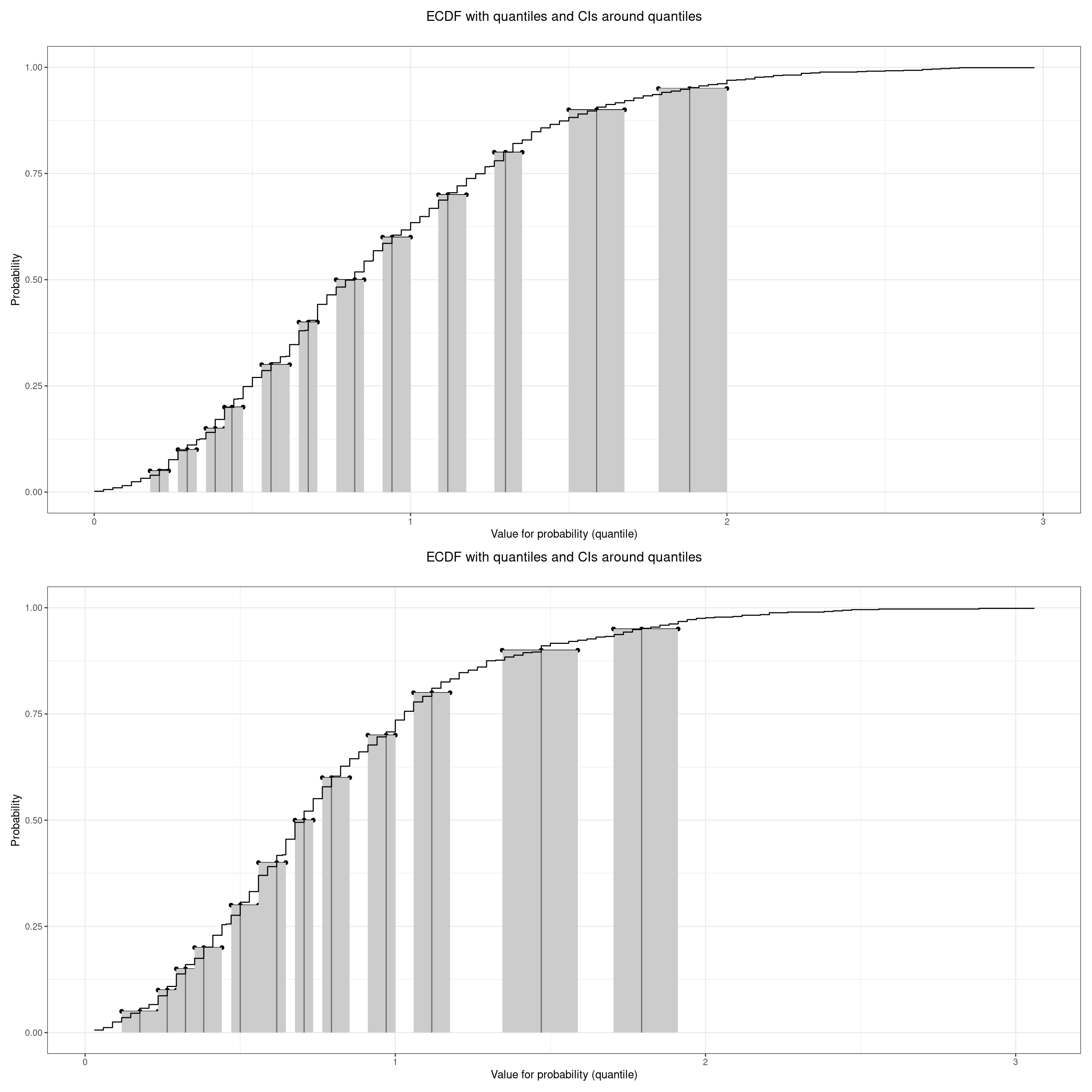 Even if you are very familiar with ECDFs, quantiles and confidence intervals it may be worth at least scan reading those before reading this post.