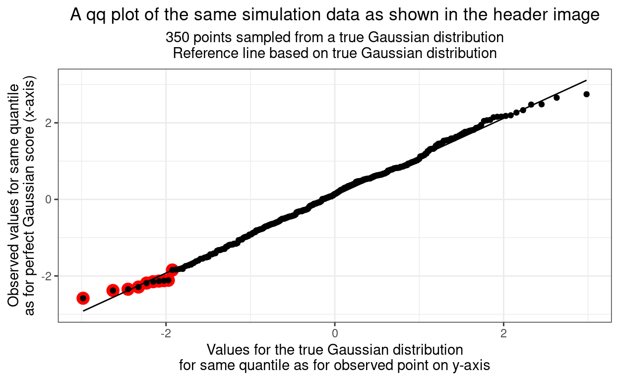 ggtitle("A qq plot of the same simulation data as shown in the header image",