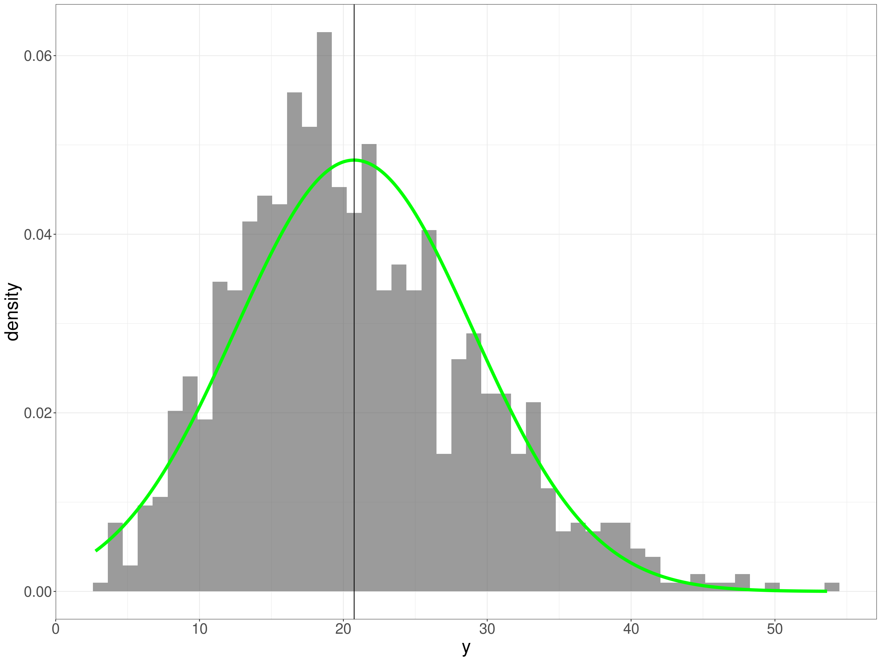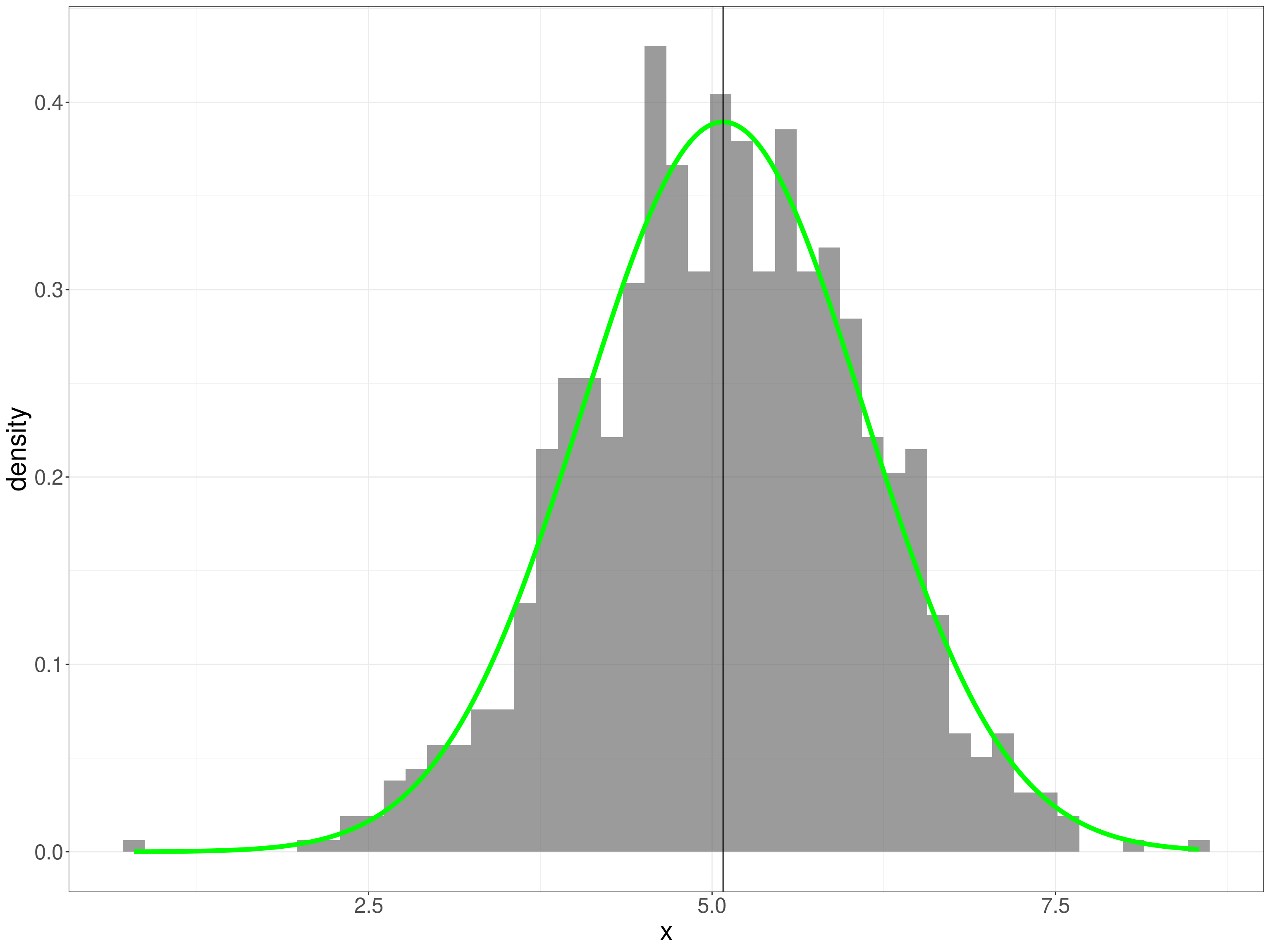 subtitle = paste0("Vertical lines mark mean (red) and 2.5% and 97.5% percentiles",