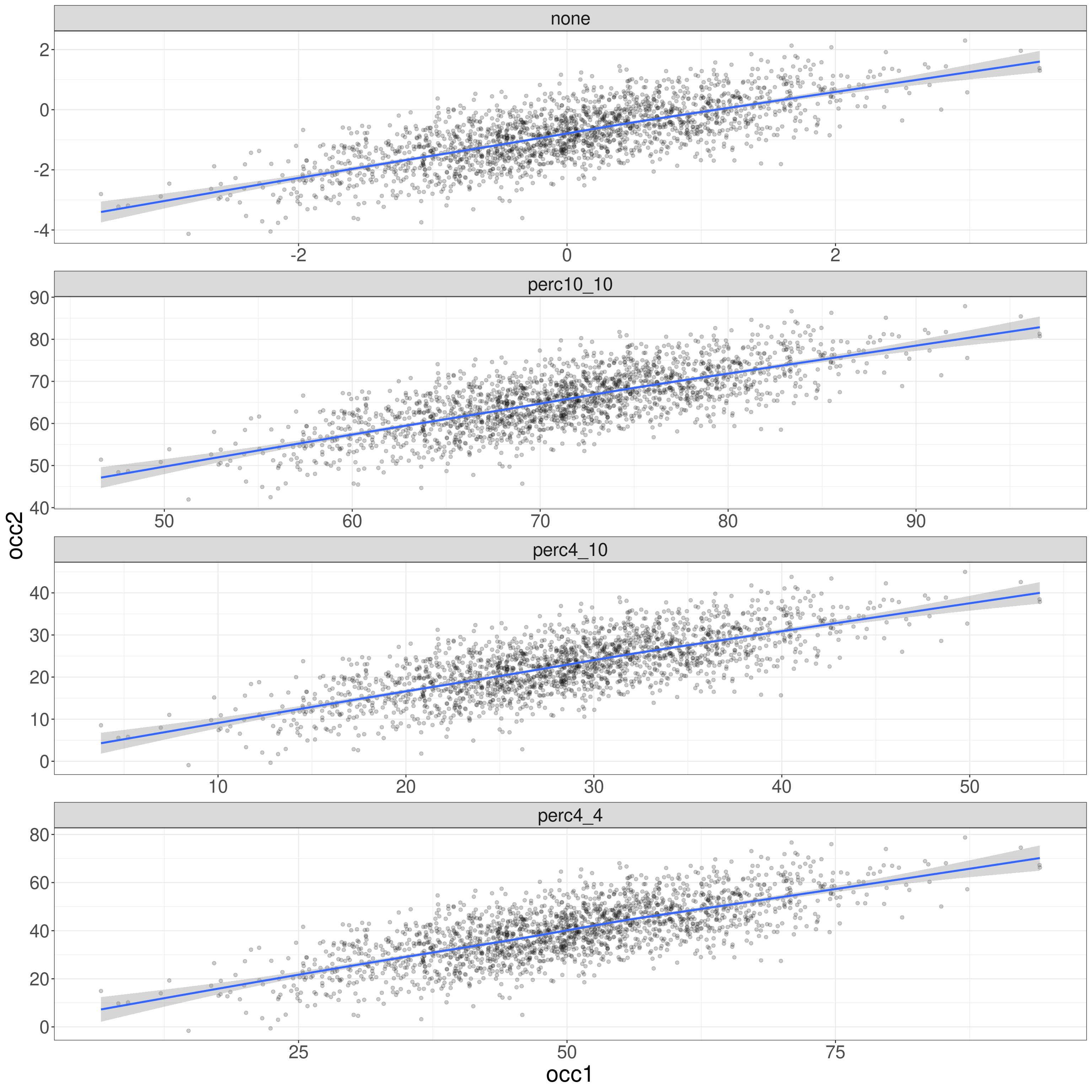 summarise(regr = list(lm(occ2 ~ occ1))) %>%