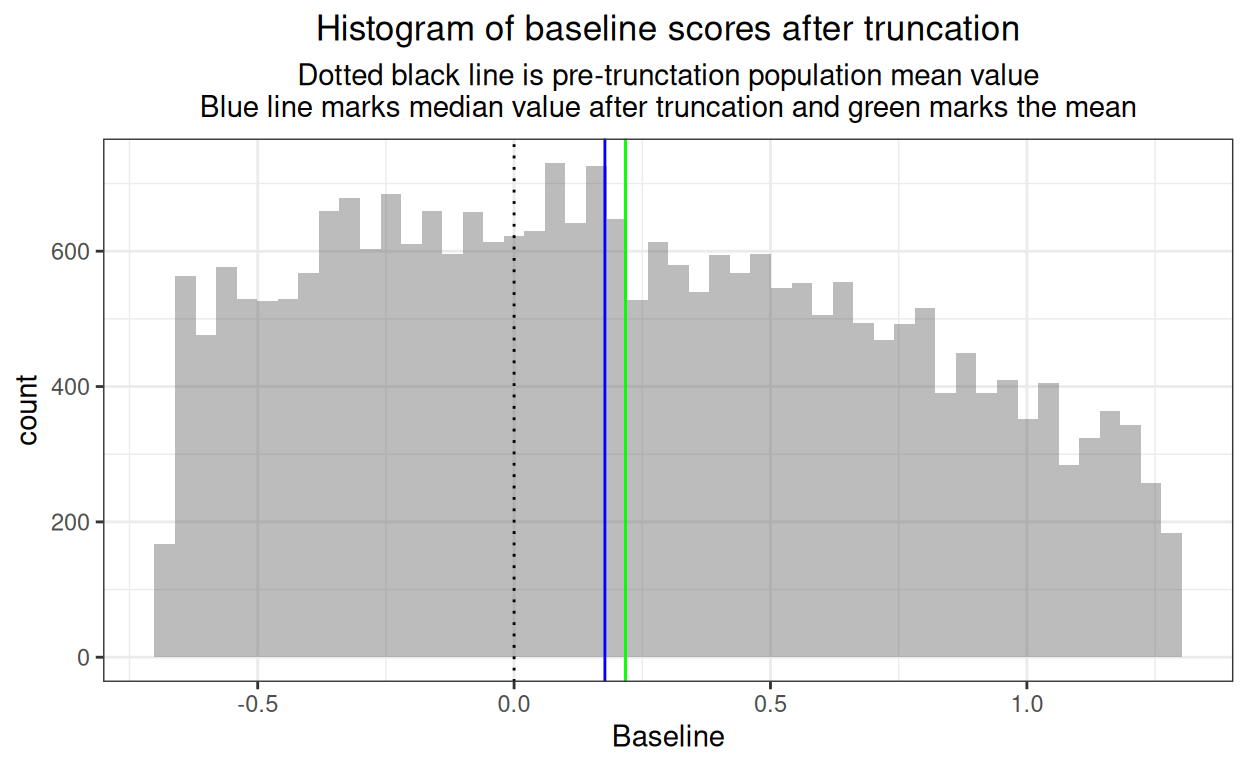 Creating censored samples from this population that will have smaller SD than the population, but a non-Gaussian distributions and analysing those using a fixed RCI or “per sample”