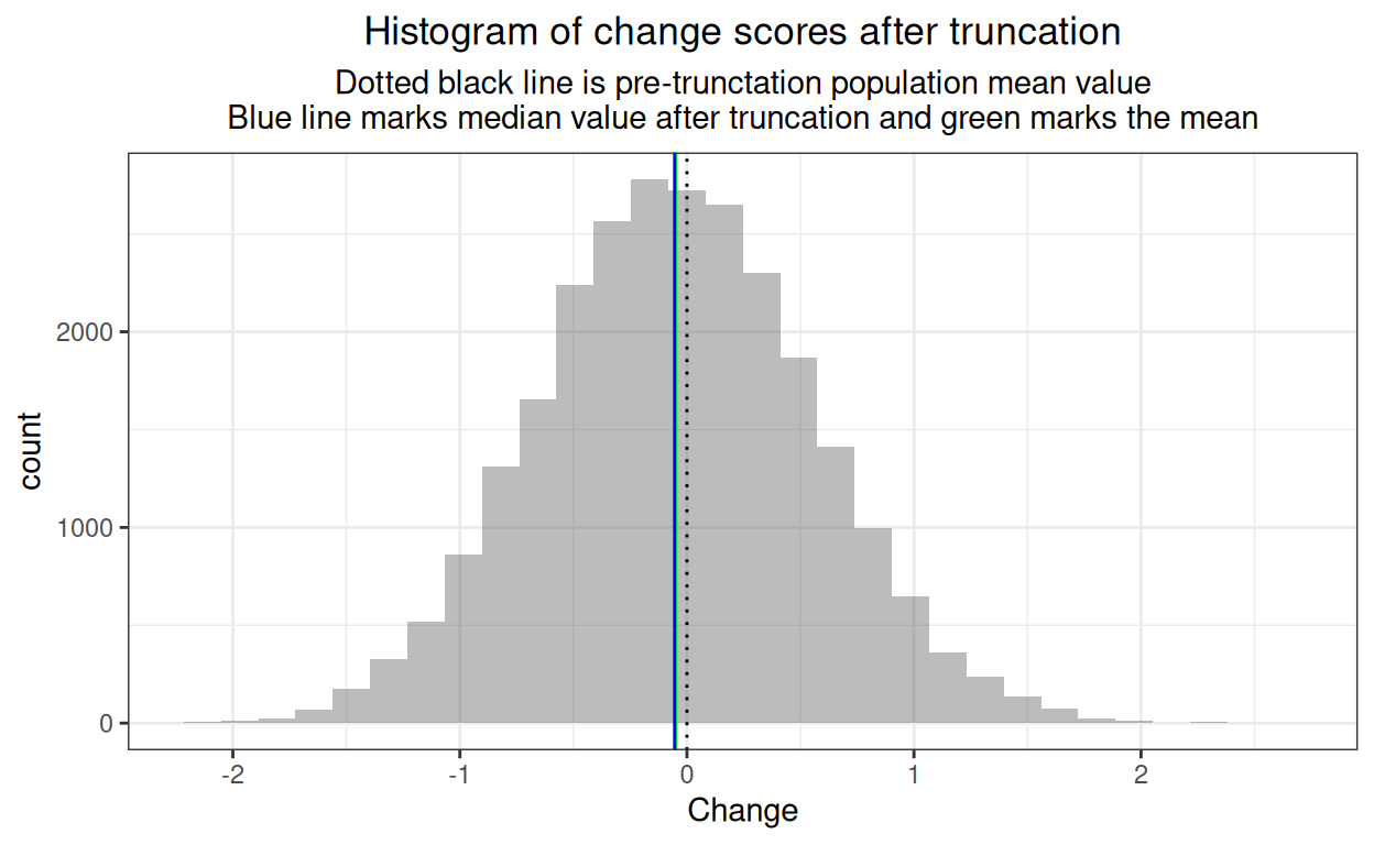 Back in another century I co-authored paper about the RCI & CSC (Evans, C., Margison, F., & Barkham, M. (1998). The contribution of reliable and clinically significant change methods to evidence-based mental health. Evidence Based Mental Health, 1, 70–72. https://doi.org/10.1136/ebmh.1.3.70, Open Access at https://mentalhealth.bmj.com/content/1/3/70) that became quite popular. In it we did comment, I think fairly sensibly, on several issues with the RCSC but we didn’t comment on this issue about the RCI that has grown in importance in my mind since then.