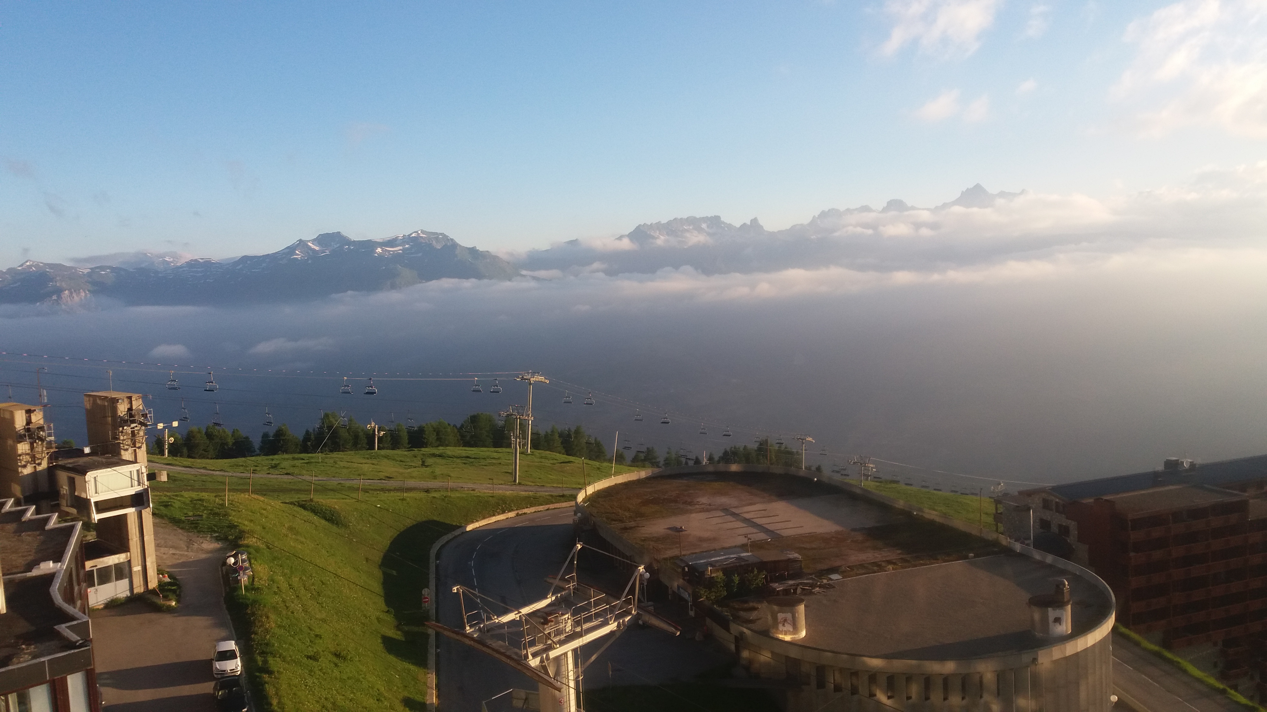 I was off on Cerise and rapidly aware that my hands were going to freeze as I shot down the mountain road with all its hairpins, dropping through that layer of cloud, into the valley you can see below it.