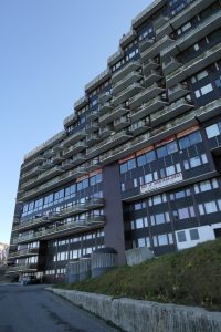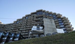 I ended up taking umpteen ‘photos and I have winnowed them down but let’s come back to my starting point: Immeuble Aime 2000 or Aime2000 (or A2k to me now). Here, zoomed in and in what I believe is a view from a plane, not a satellite, here is the extraordinary building that is now my home seen from above.