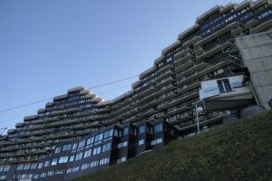 I like the way the ziggurat structure is both completely of its late 60s (opened 18.iii.1970) concrete “new brutalist” style but also catches something of the vertical and horizontal twists of the scenery (look back at that short from above and yes, it’s harshly linear but it also twists as the valleys and ridges do all around it). It’s so much cleverer than its neighbours.