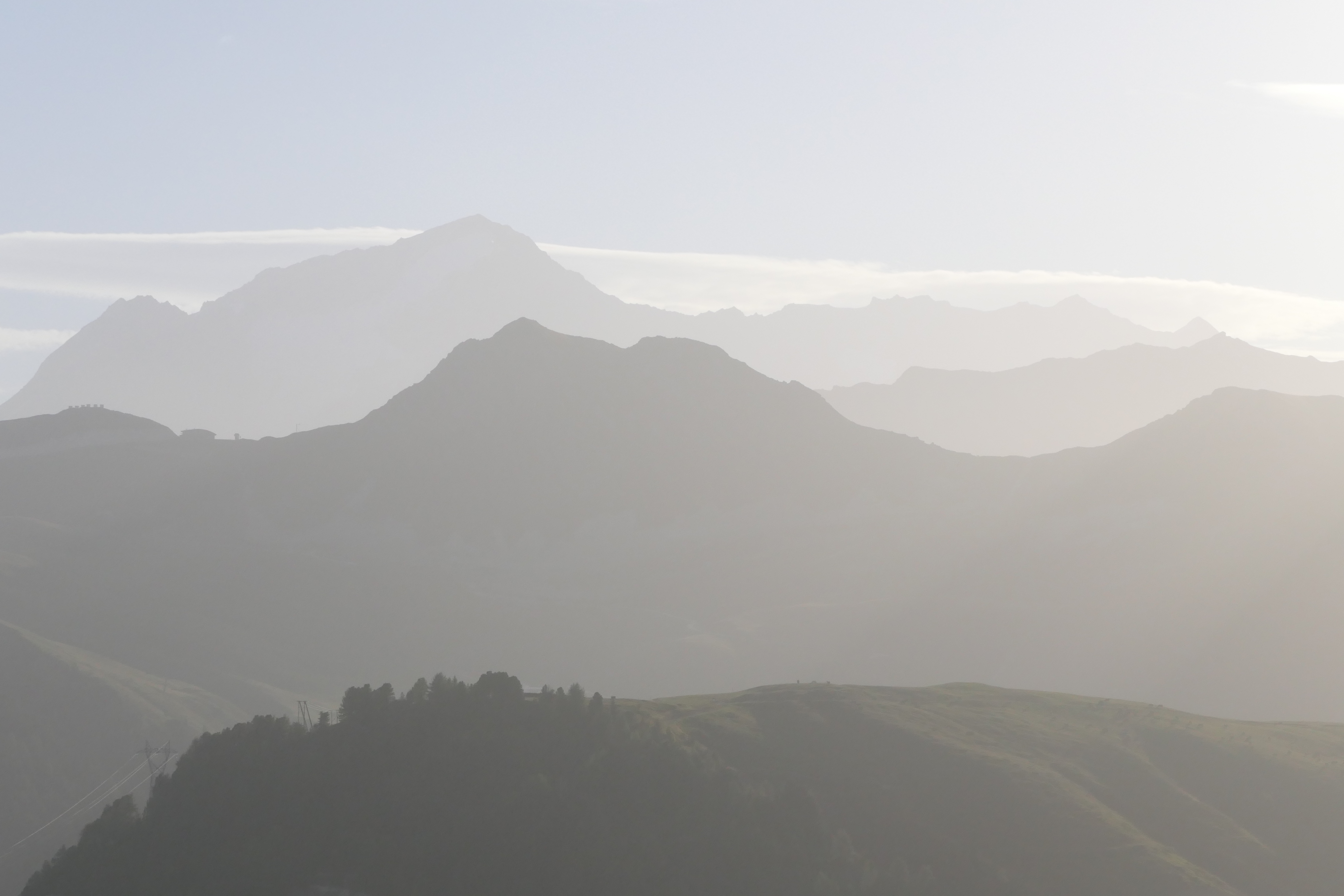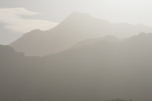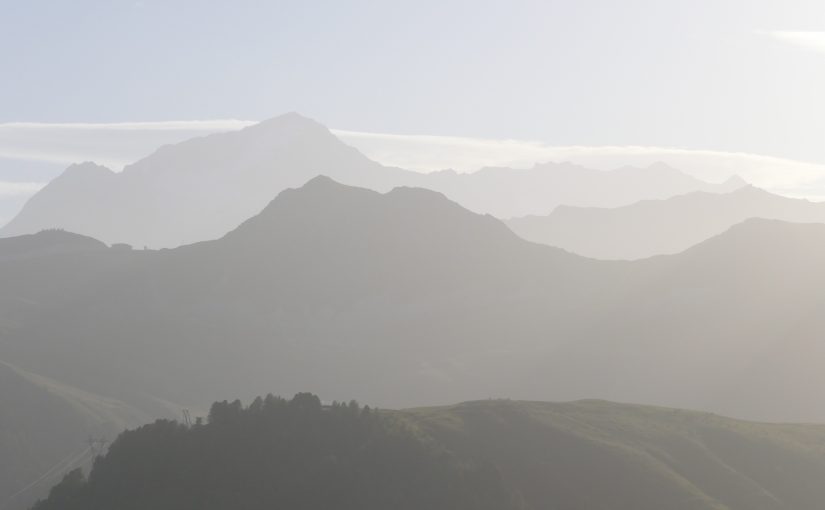 This morning opened with a lot of haze in the air creating what photographers call “atmospheric perspective”: where you can see what’s further away and what’s nearer by the blurring and desaturation of colours the further away things are. Of course, overlap perspective up in the mountains mean you can be very wrong about how far away things are but never about what’s in front of what! However, this “atmospheric perspective” is a part of the glory of the views up here that I love. So let’s have that header image from this morning again. (As usual, click to get the full image.)