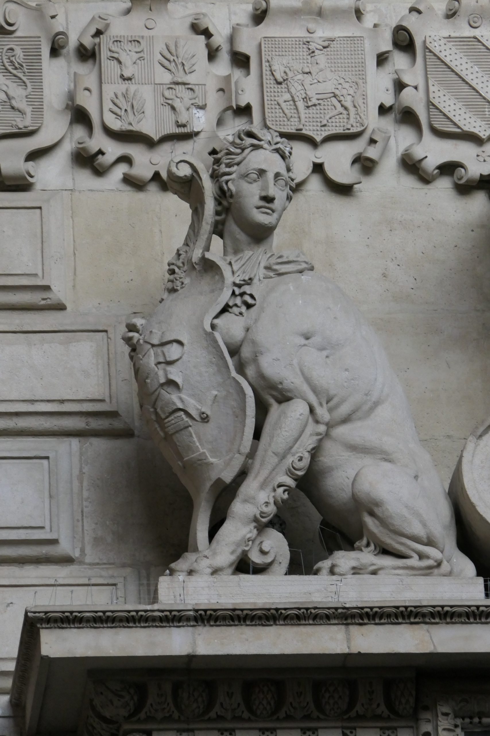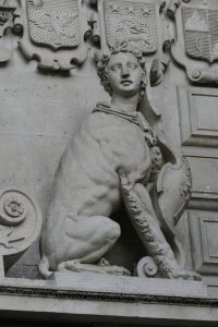 What is it about those, are they chimeras on each side of the smirking man? Women’s heads on dogs bodies? And surely not to scale. Like something that Mel Brooks and Marty Feldman might have done in the best spirit of Young Frankenstein?