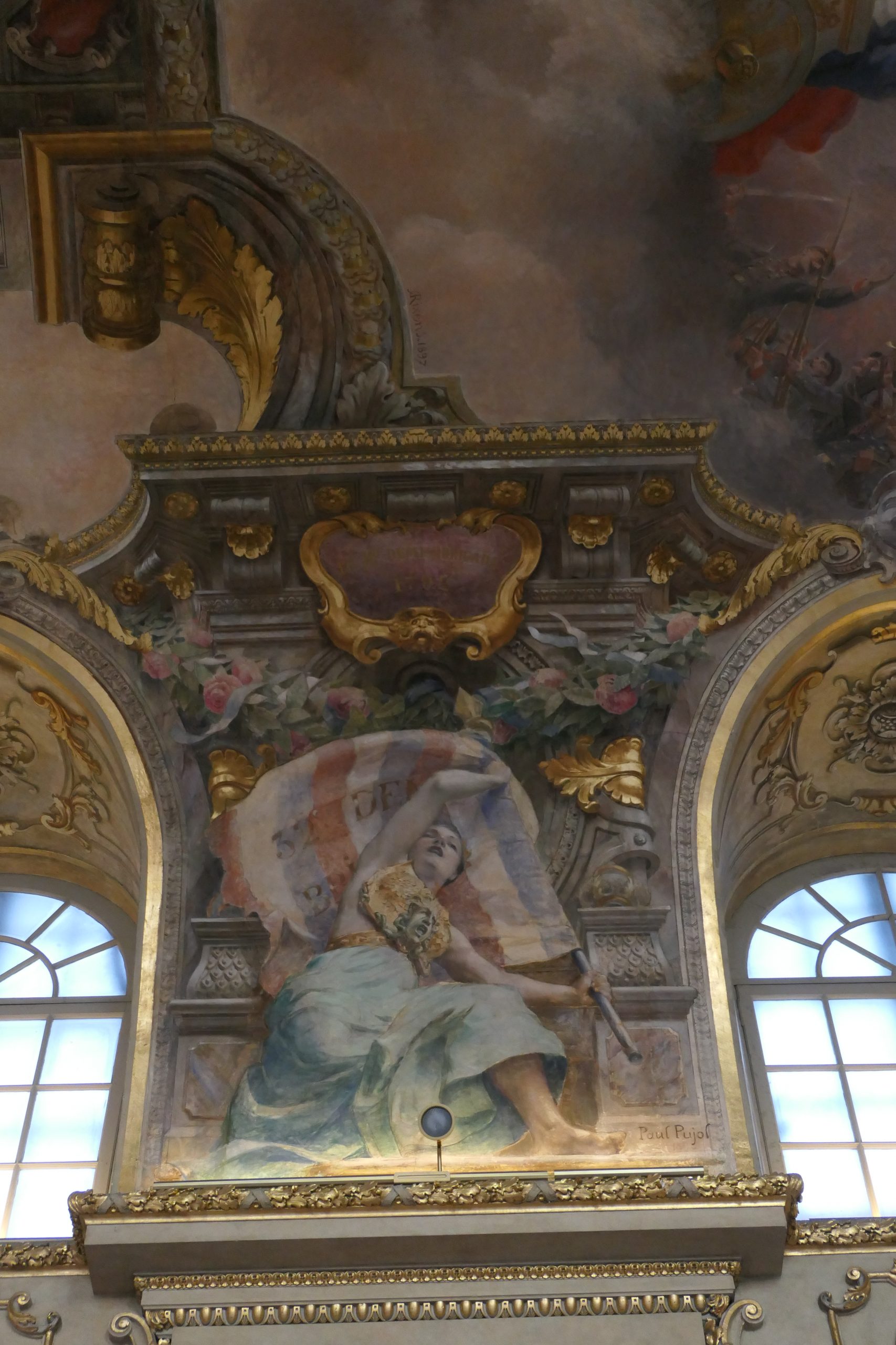 Oh dear, I didn’t take any general ‘photos on Friday, I was trying to get the details in all their grandiose and glorious awfulness. OK, so “Le Capitole de Toulouse” is a late 19th century building around much earlier roots and the main civic building. I had learned around the time I first went into it, with only smartphone camera, that my sister, a charismatic teacher of history of art, had found herself in an interesting discussion of whether there can be bad art with a Taiwanese colleague. I’m no art historian or expert on art but I think the answer is that there can be great art and I believe the art in the capitole in Toulouse is, for me, quintessential bad art. Well, those were in the inner courtyard. As ever, click to get full size images.