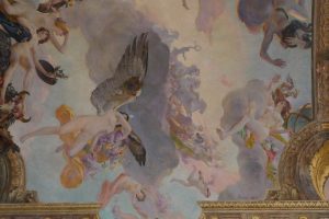 No, the huge gallery, apparently created by a man called Pujol by knocking through three existing rooms isn’t a simple case of putting it a couple of RSJs to take the load, oh no, dig this ceiling.