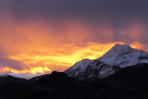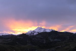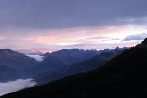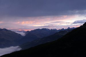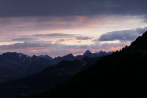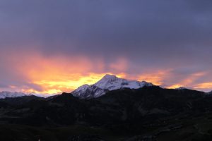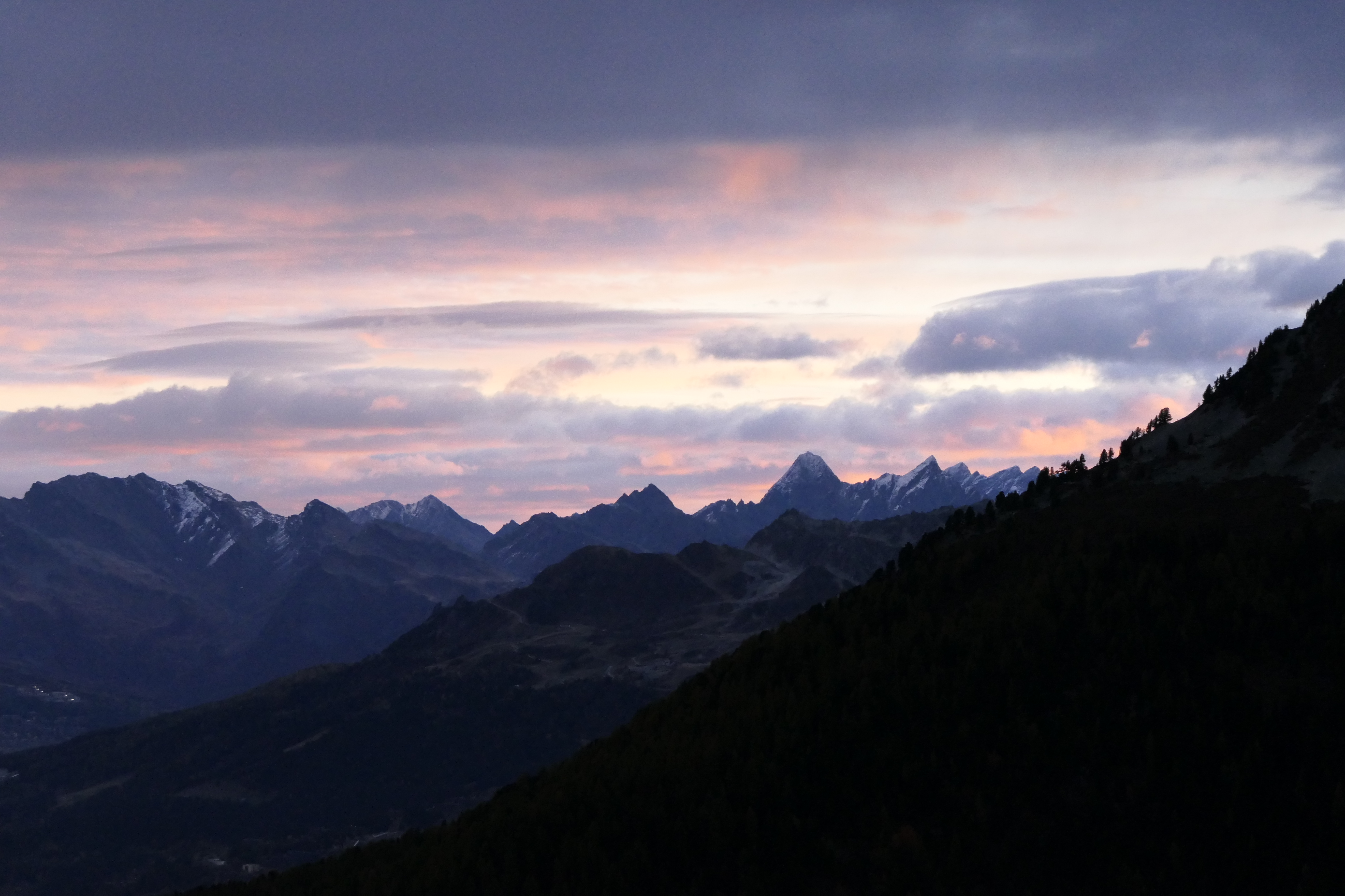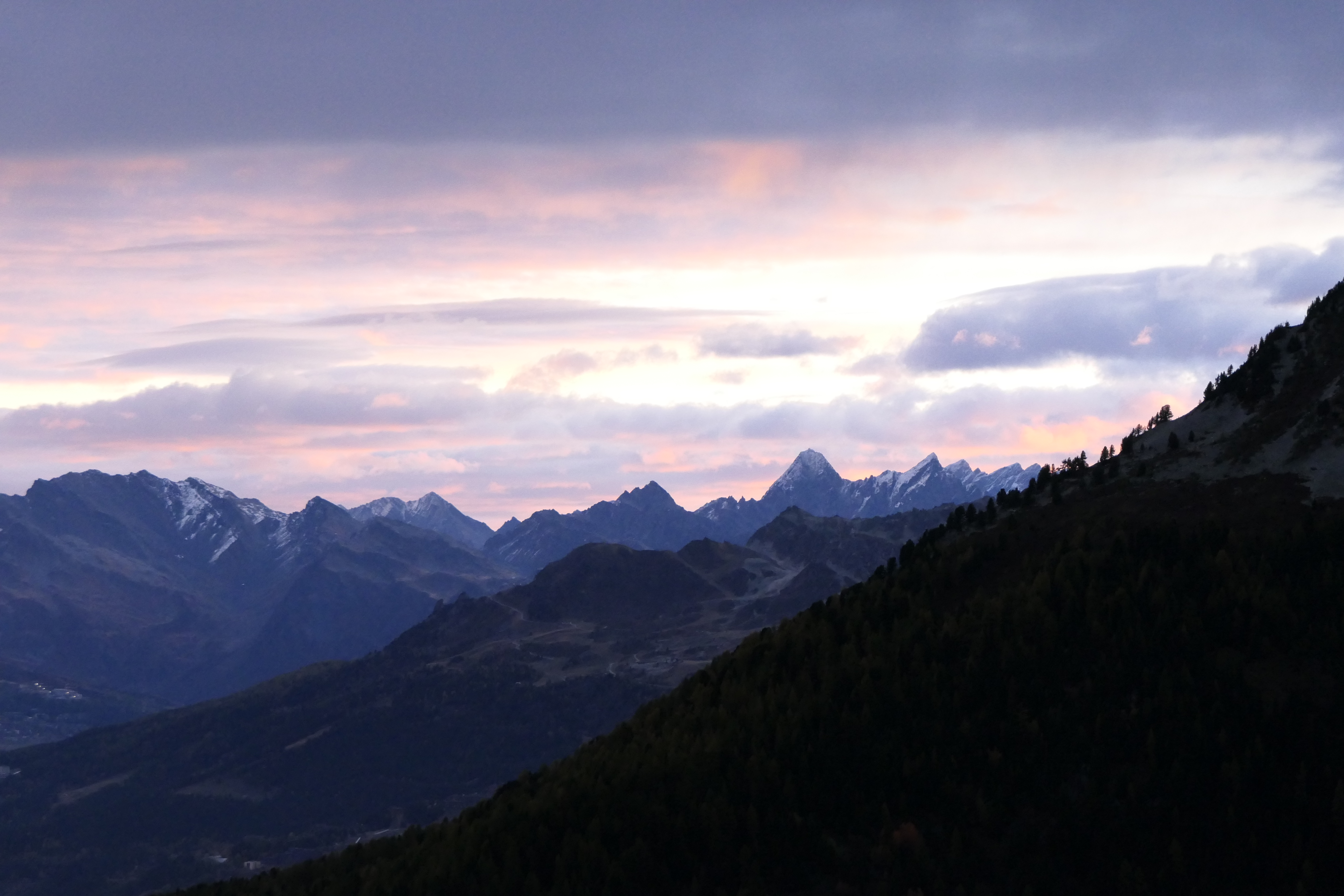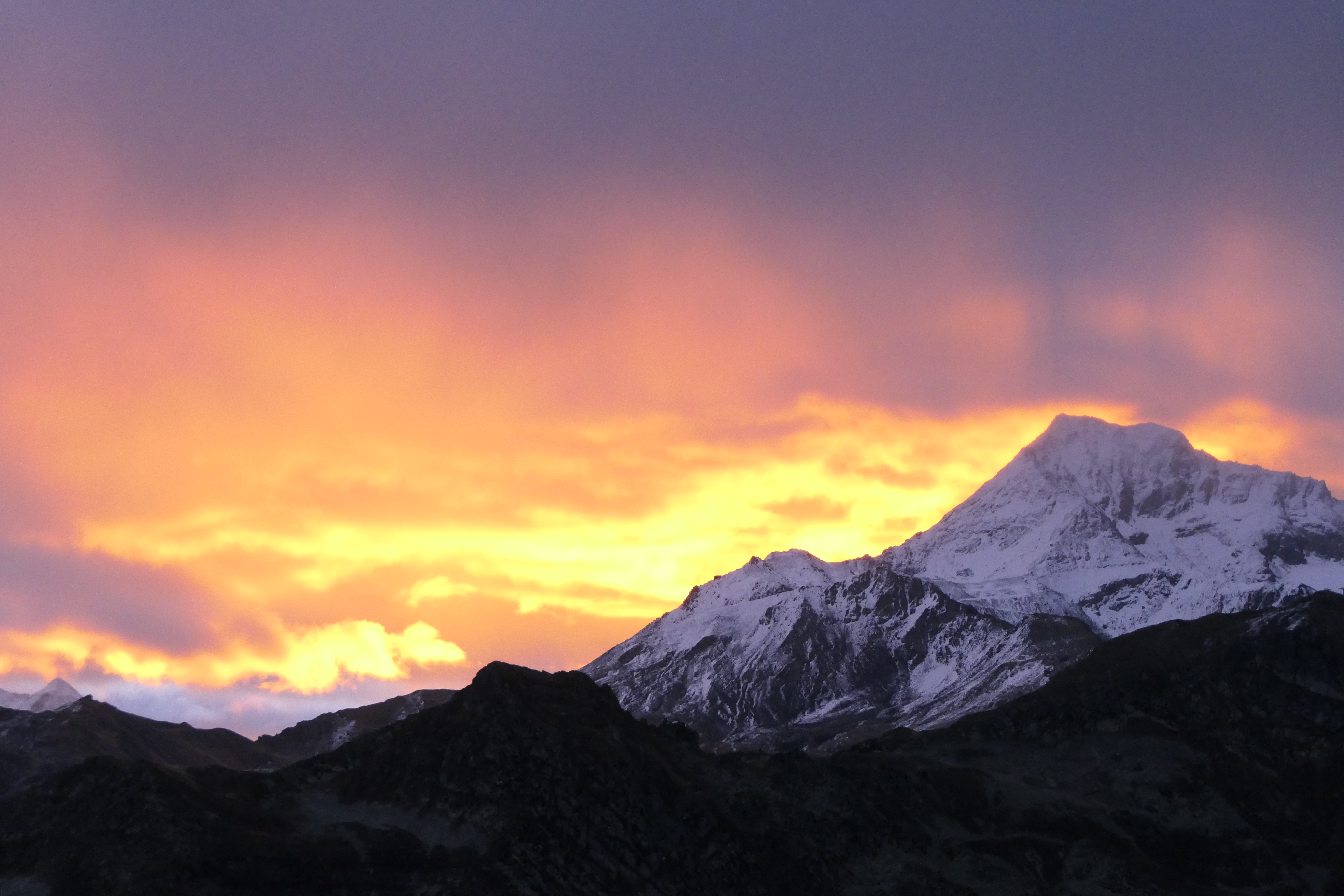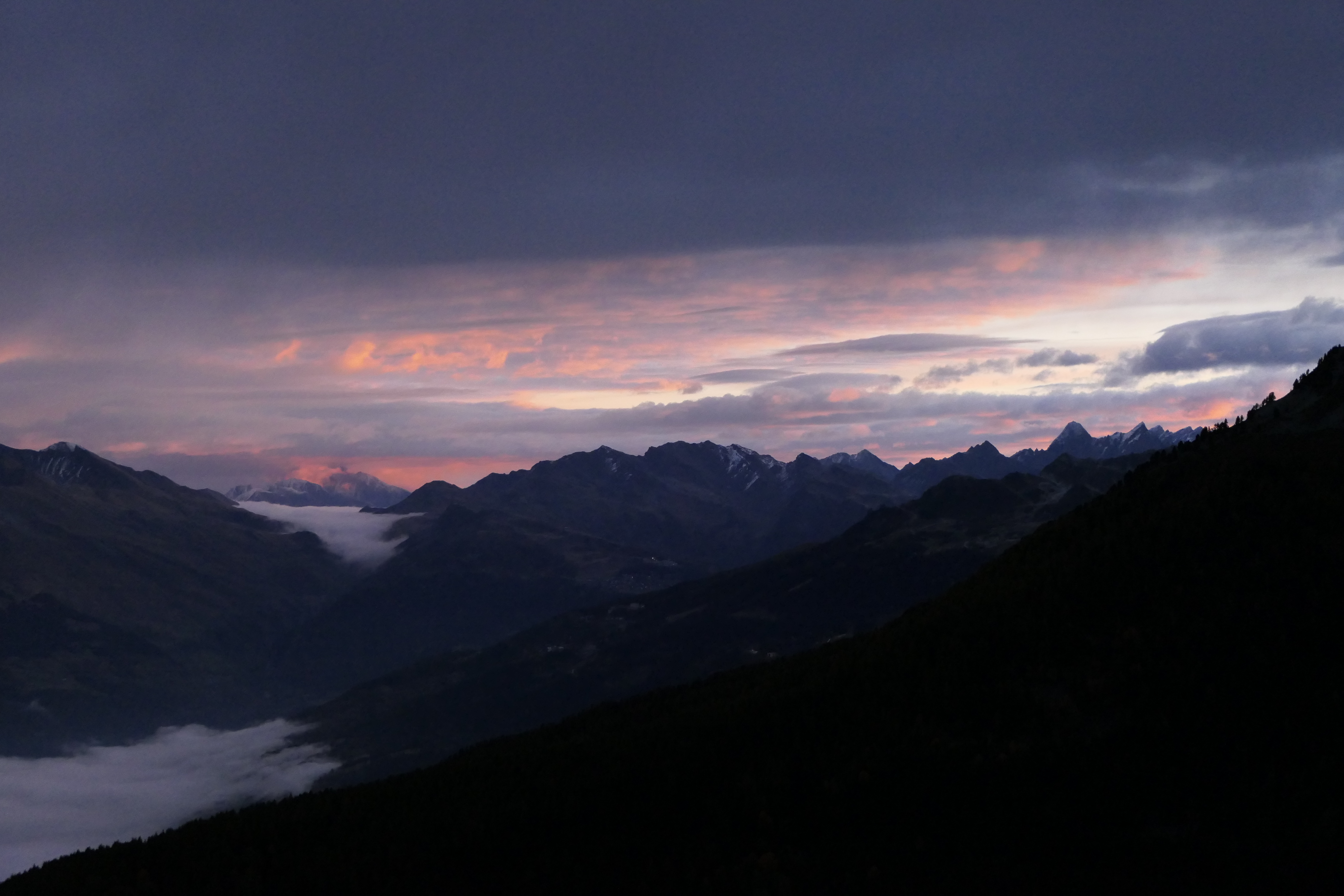 I was working yesterday morning. It had been a lovely dawn but not that unusual but something caught my eye and I looked up to see an amazing rich salmon pink was colouring a set of clouds beyond Grand Assaly ahead. I grabbed the camera and shot out onto the terrace but already the colour there had faded markedly, however, the sun exploding above the summit of Bellecôte and its little glacier was extraordinary.