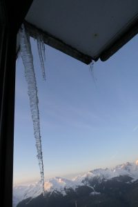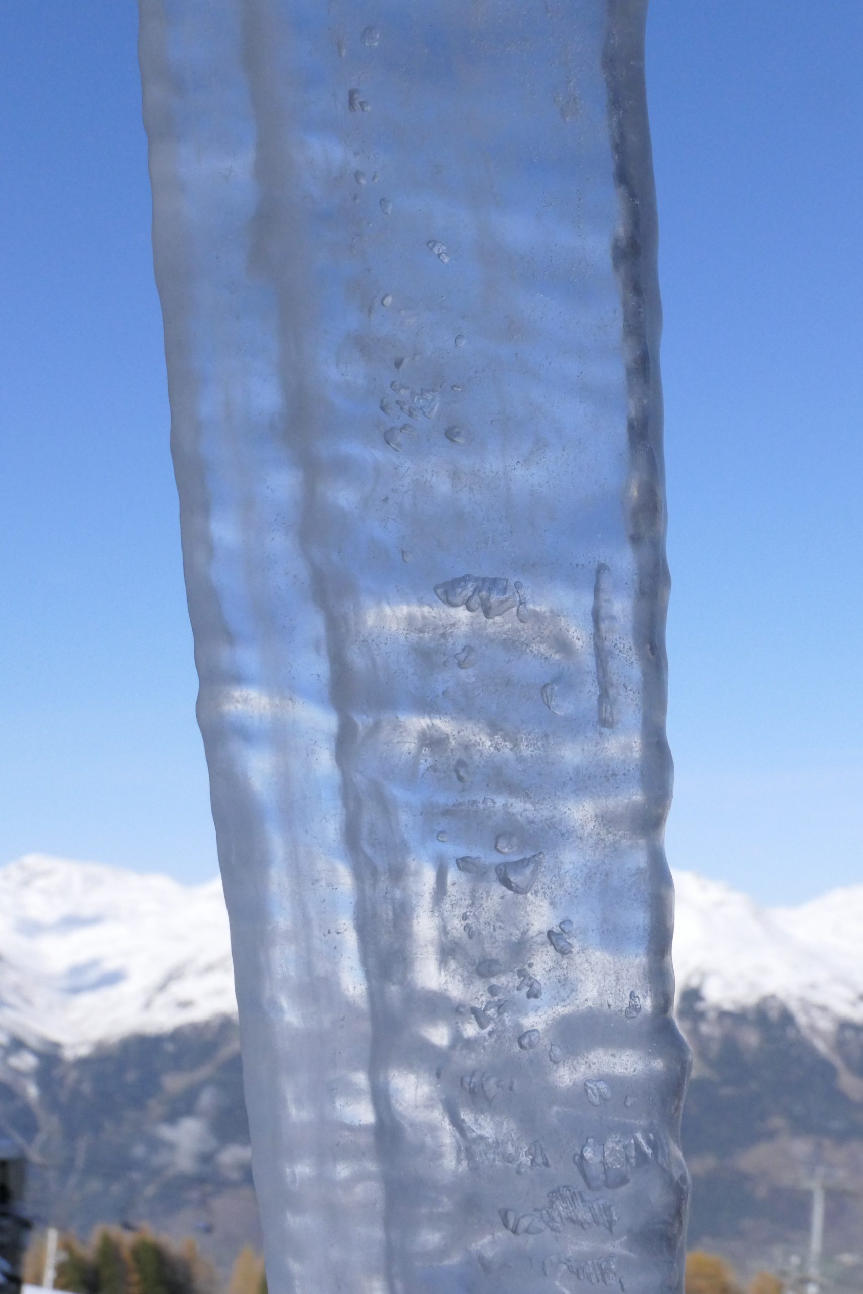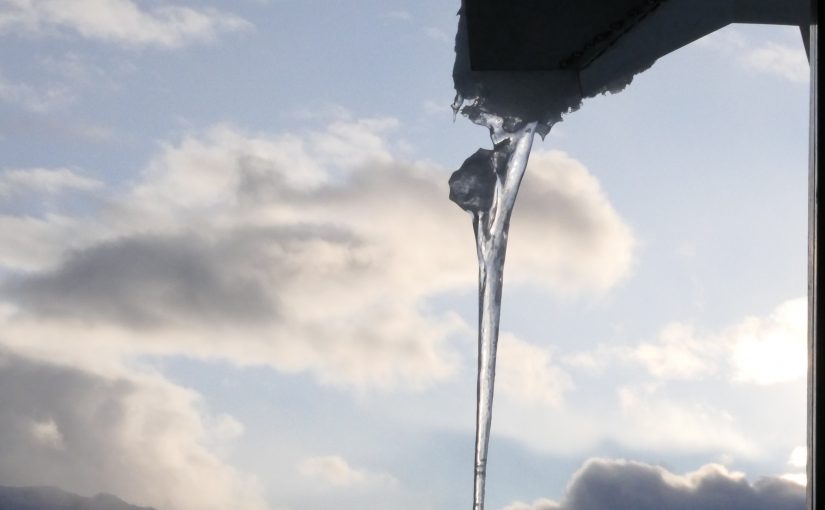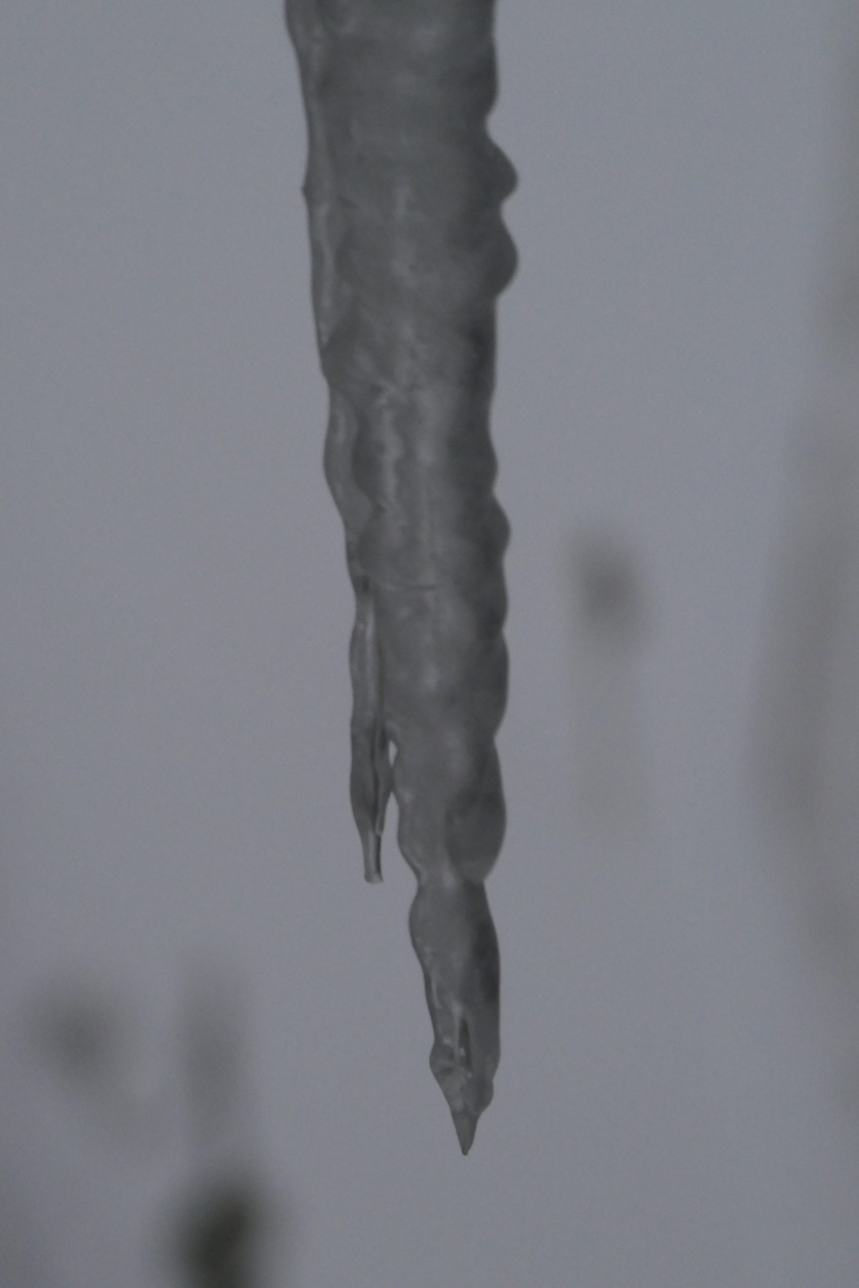 It’s also picqued my curiosity and got me thinking more about how it is that icicles can be branched, how they can be rippled, how they get air bubbles inside them. I love all that fairly idle ruminating and I know it’s trivial but it’s also a privilege I have up here. I can just think, or I can if I get my head up from the keyboard enough. For me there’s a funny sort of thinking that is just aesthetic appreciation: I think these icicles are pretty pleasant to look at. Perhaps beautiful is too strong but they’re good! Another bit is geeky: I love thinking about the physics of how they form and shape themselves. I rather like it that, to be honest, I really don’t think I have a clue why the big one is so rugous (ooh, now there’s a lovely medicalese word for ribbed and wrinkled!) I think I have started to understand how they can fork but I really don’t understand the bubbles inside the big one.