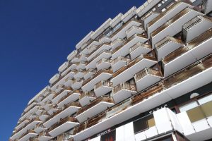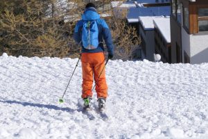 If you look carefully, just above that apartment block, halfway up the slope is a skier walking up. (The lifts won’t work until the season starts on 14.xii.19.)