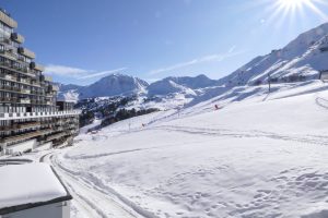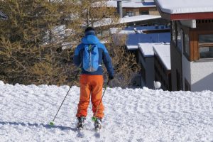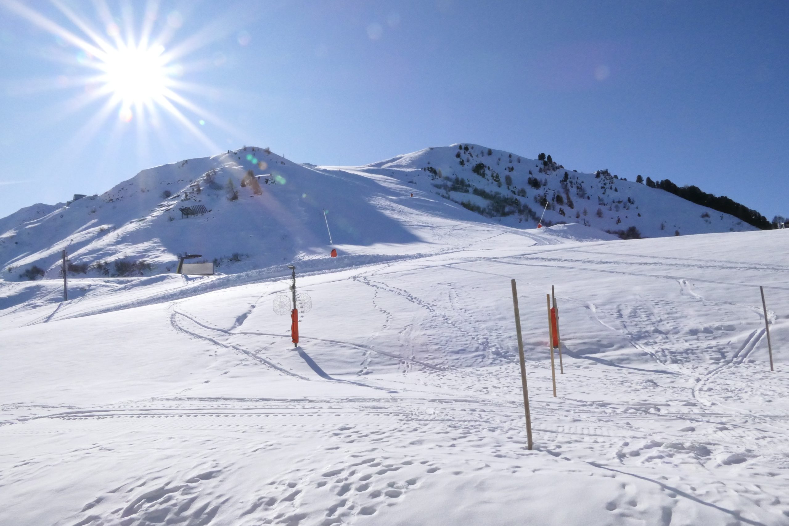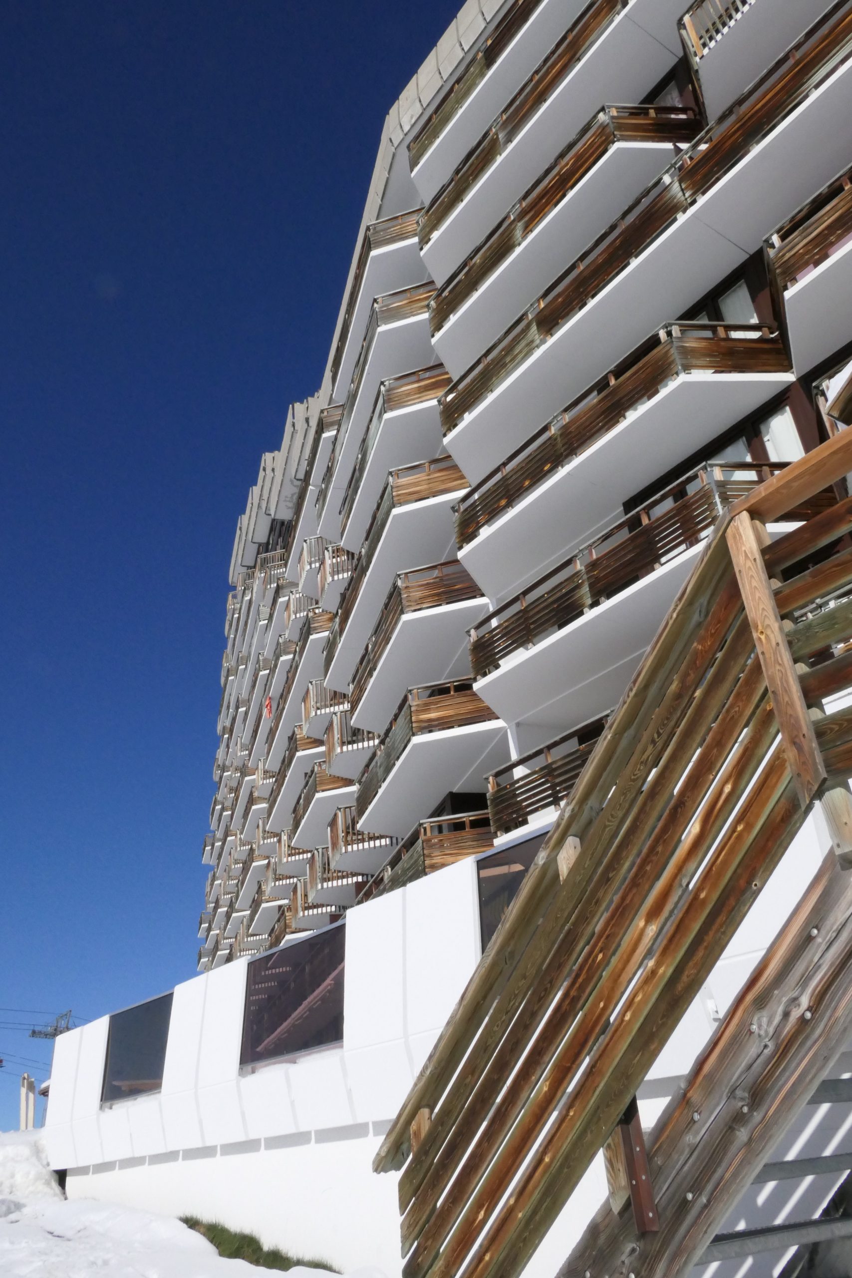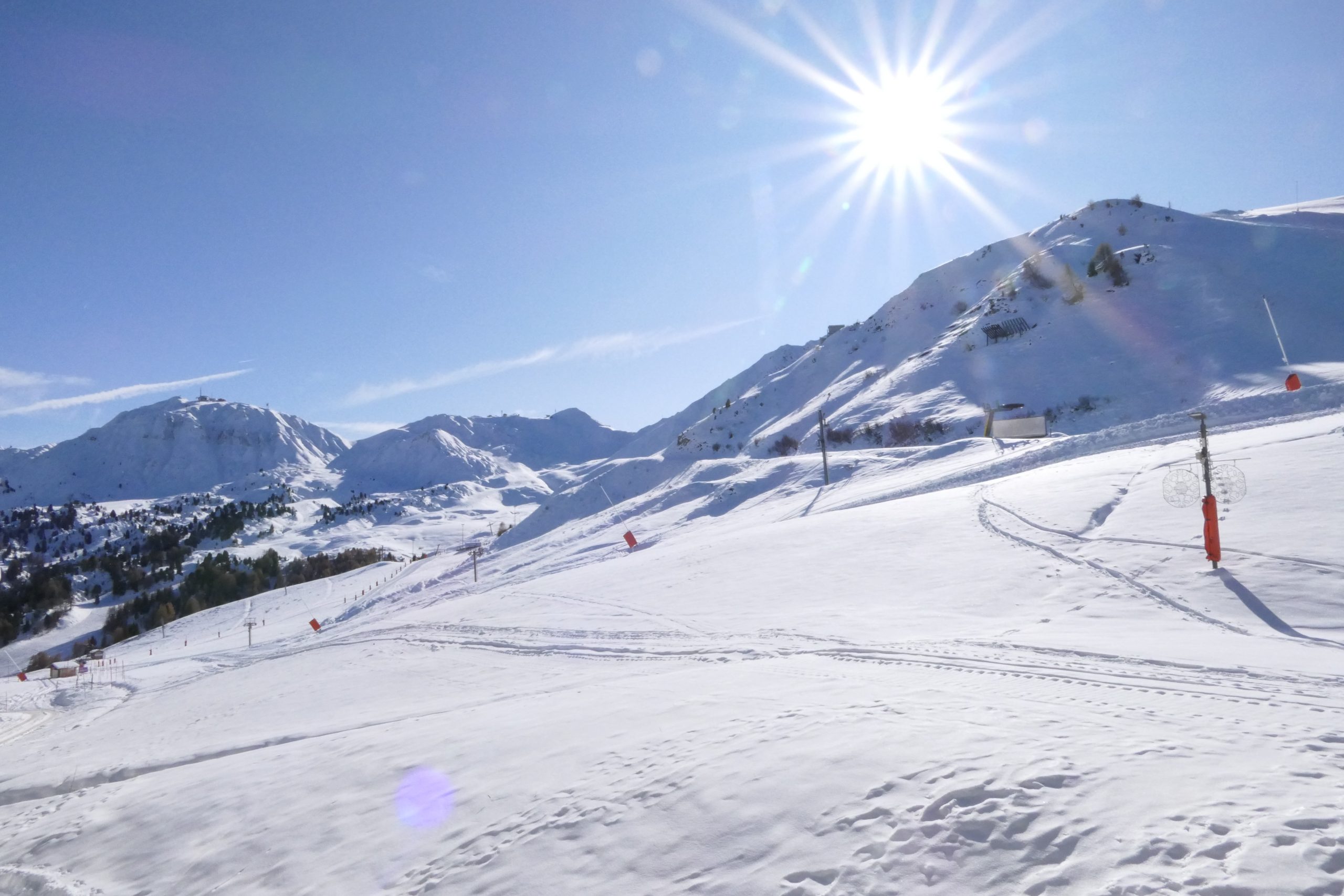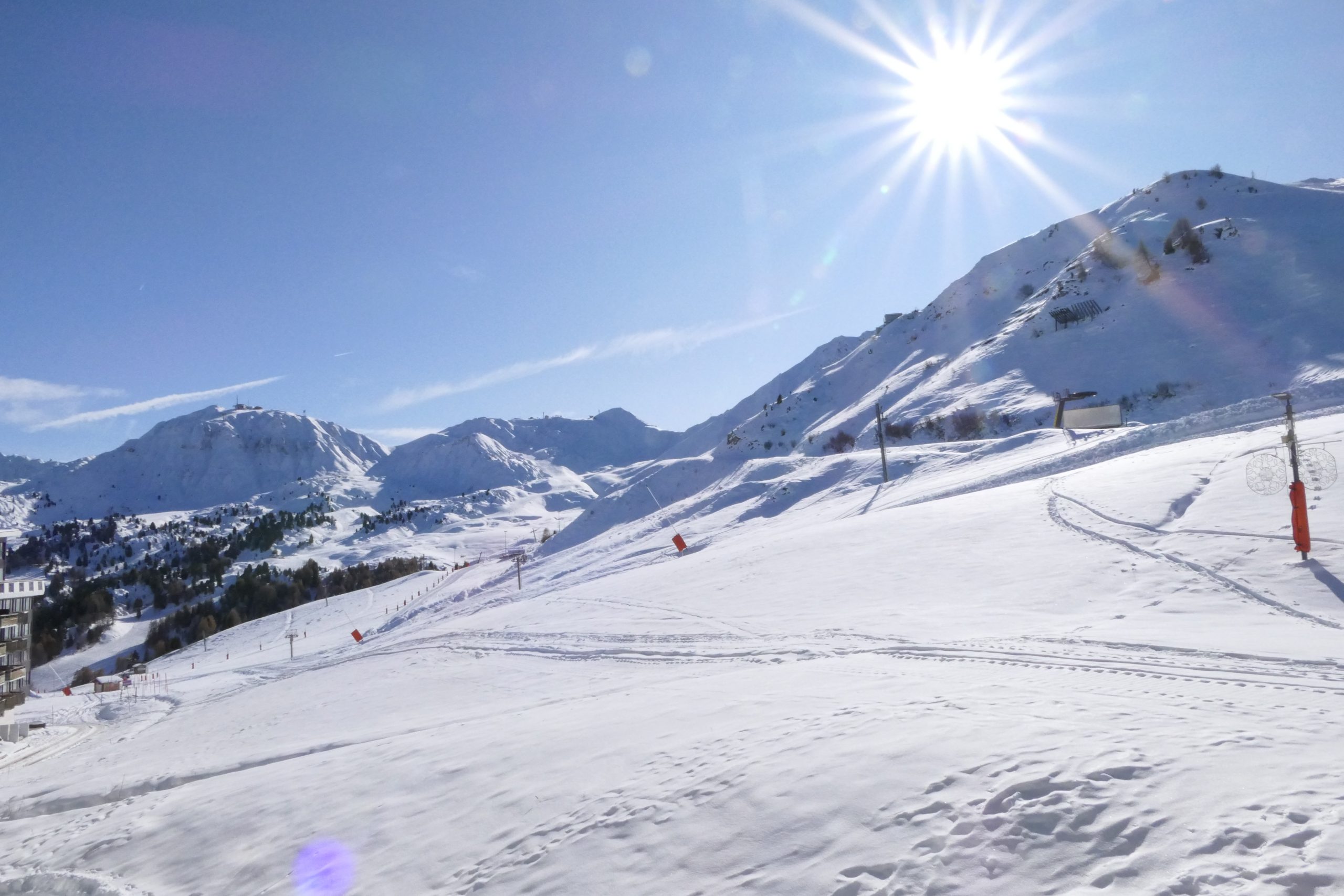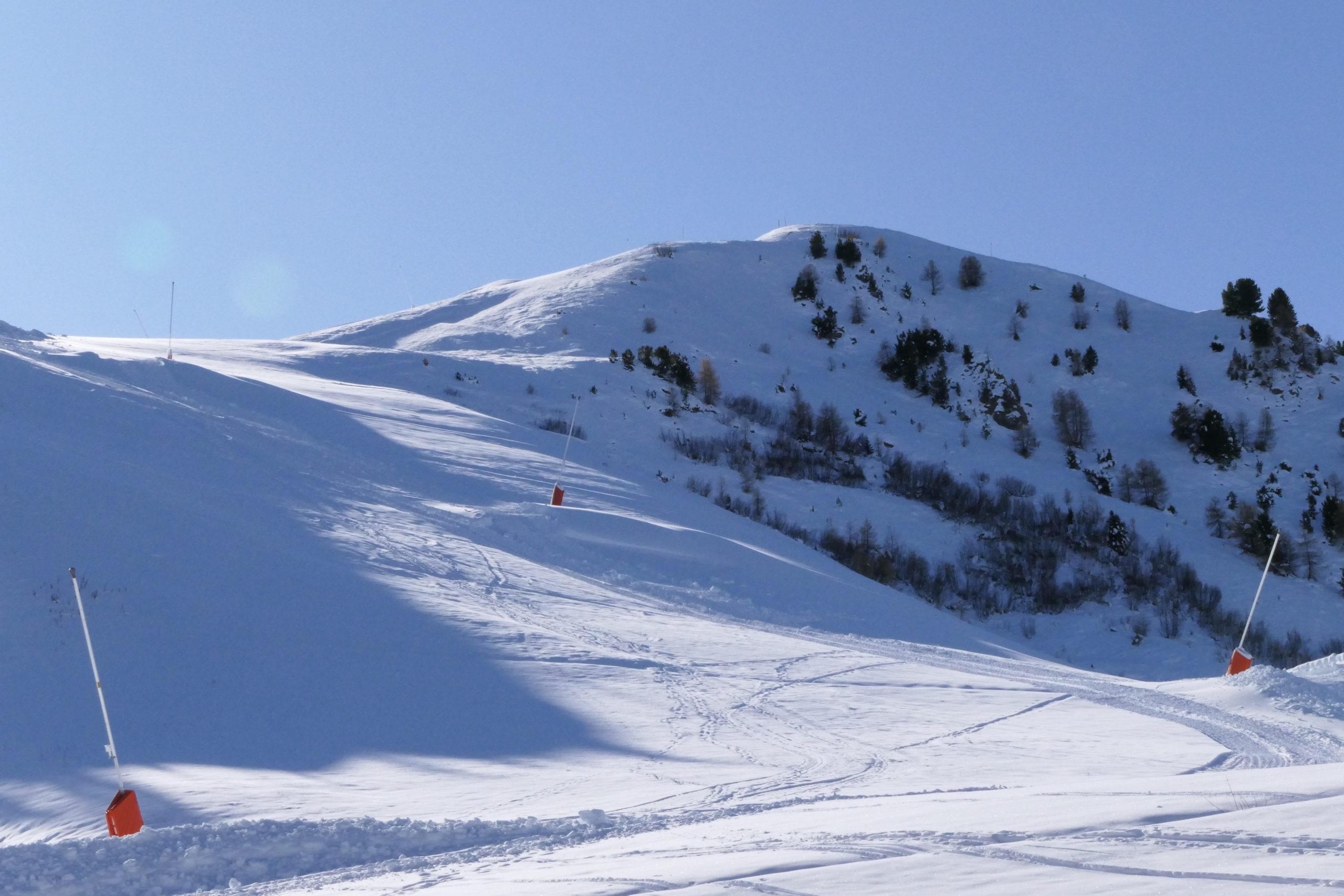 Yesterday morning I had run out of milk. The SPAR down in Plagne Centre has UHT milk reliably but only gets pasteurised milk on Wednesdays (and mostly because I asked I think, they’re kind!) There hadn’t been much new snow for days but everywhere around me up here was white. I didn’t feel like hopping on Cerise and cycling down so around 11.00ish (SPAR is open 07.30 to 12.30 and 16.30 to 19.30 and only on weekdays) I nipped down the stairs to see if the way down the slopes looked walkable and it did. Clearly pistebashers had flattened two narrow pistes that run from Aime2000 to Plagne Centre. Back up for backpack and money (I hadn’t thought it would look OK and had wondered about cross-country skis or snowshoes) and off I went.