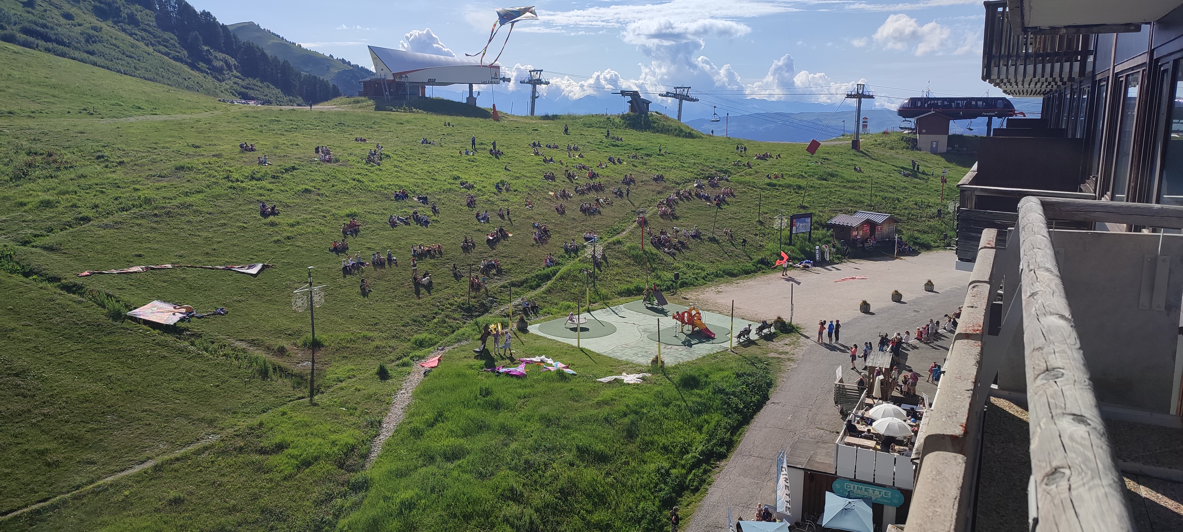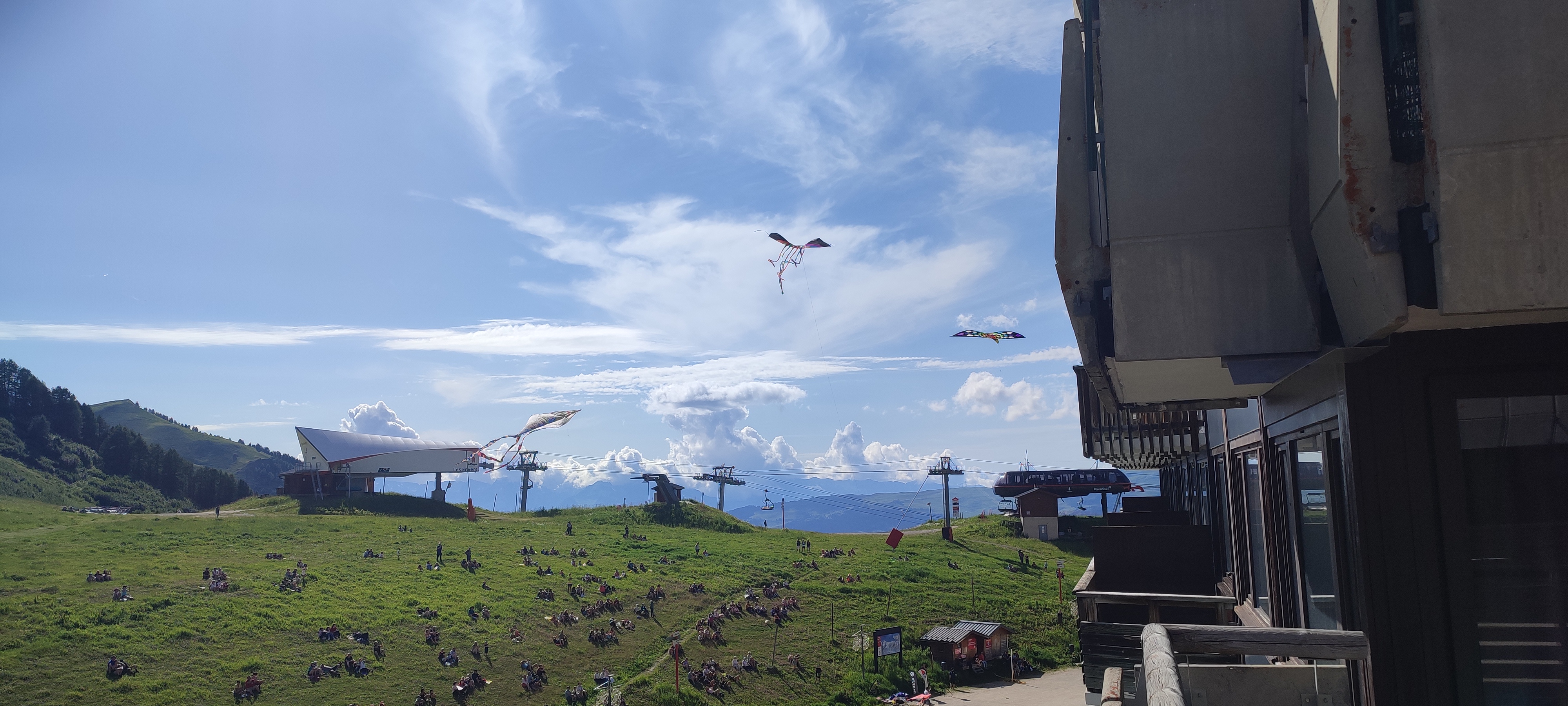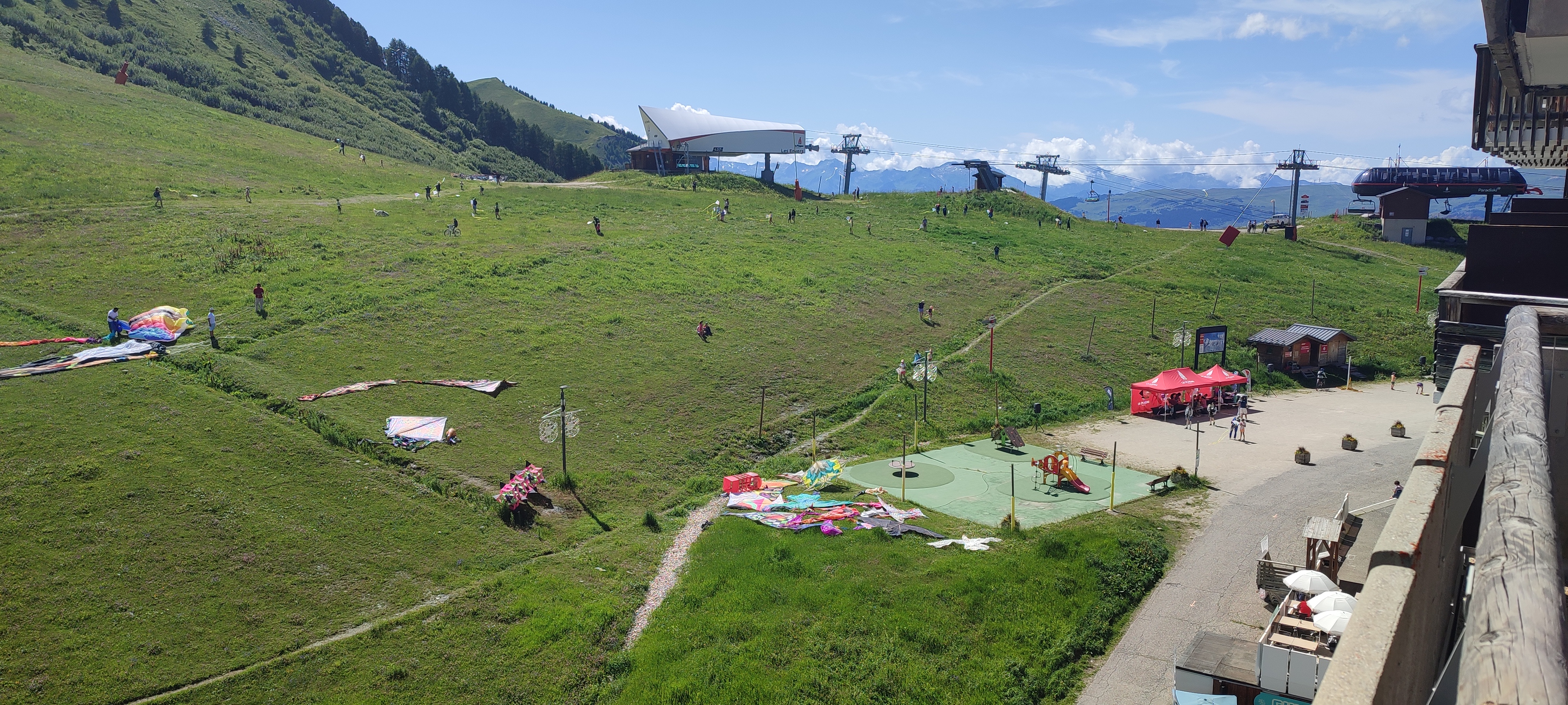 What was funny to me, looking down from “my” terrace up on level L here where I live, was that the organisers didn’t seem to be doing a very good job of explaining that kites need wind and that if you looked around down where they were organising things, it would rapidly become clear that there were areas in wind shadow whether of the saddle or of our pretty substantial building. But there was a real diversity of kites and many people having fun which is what matters!