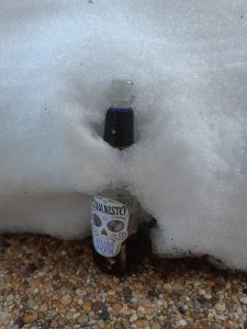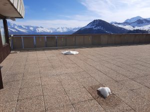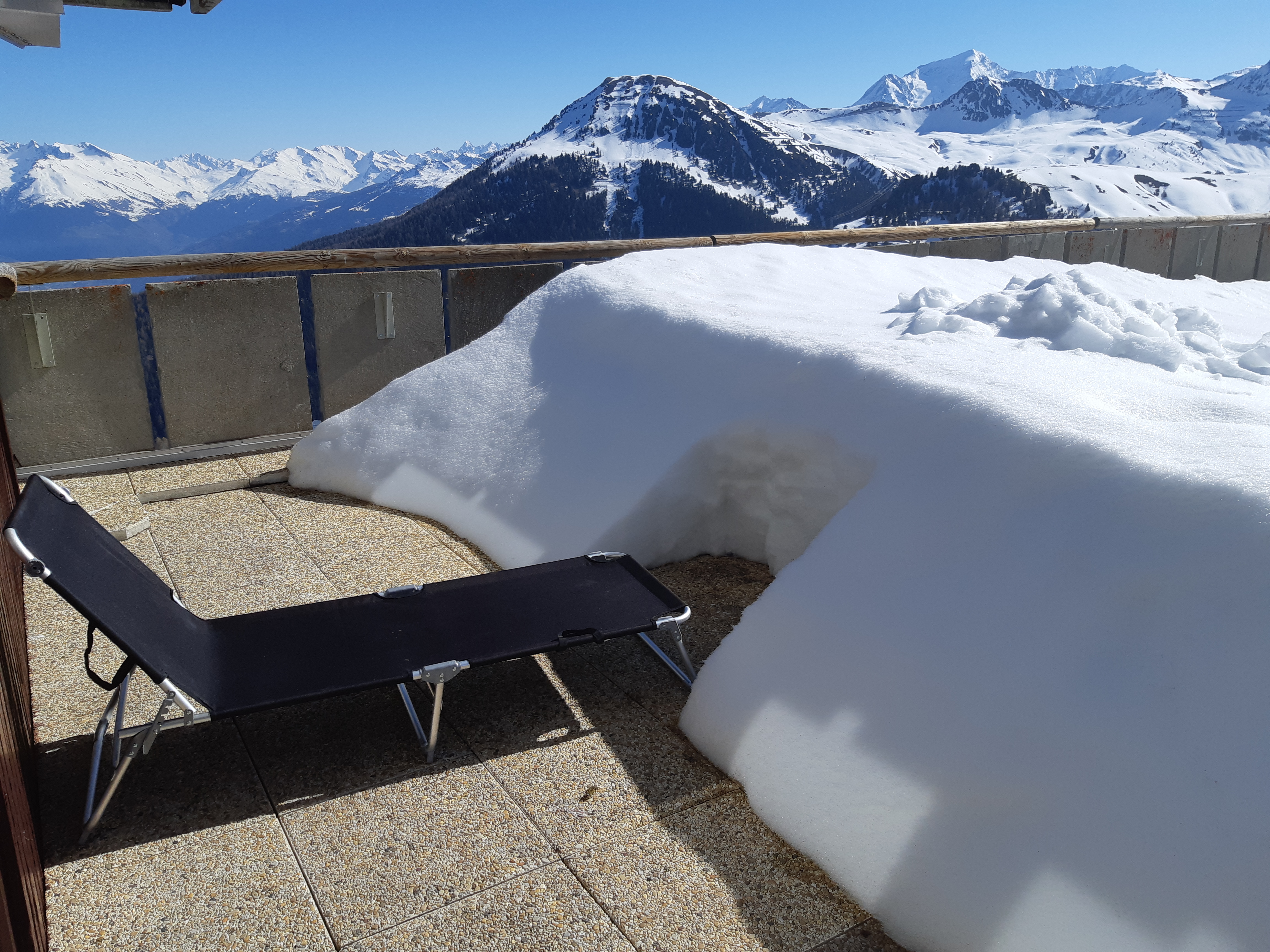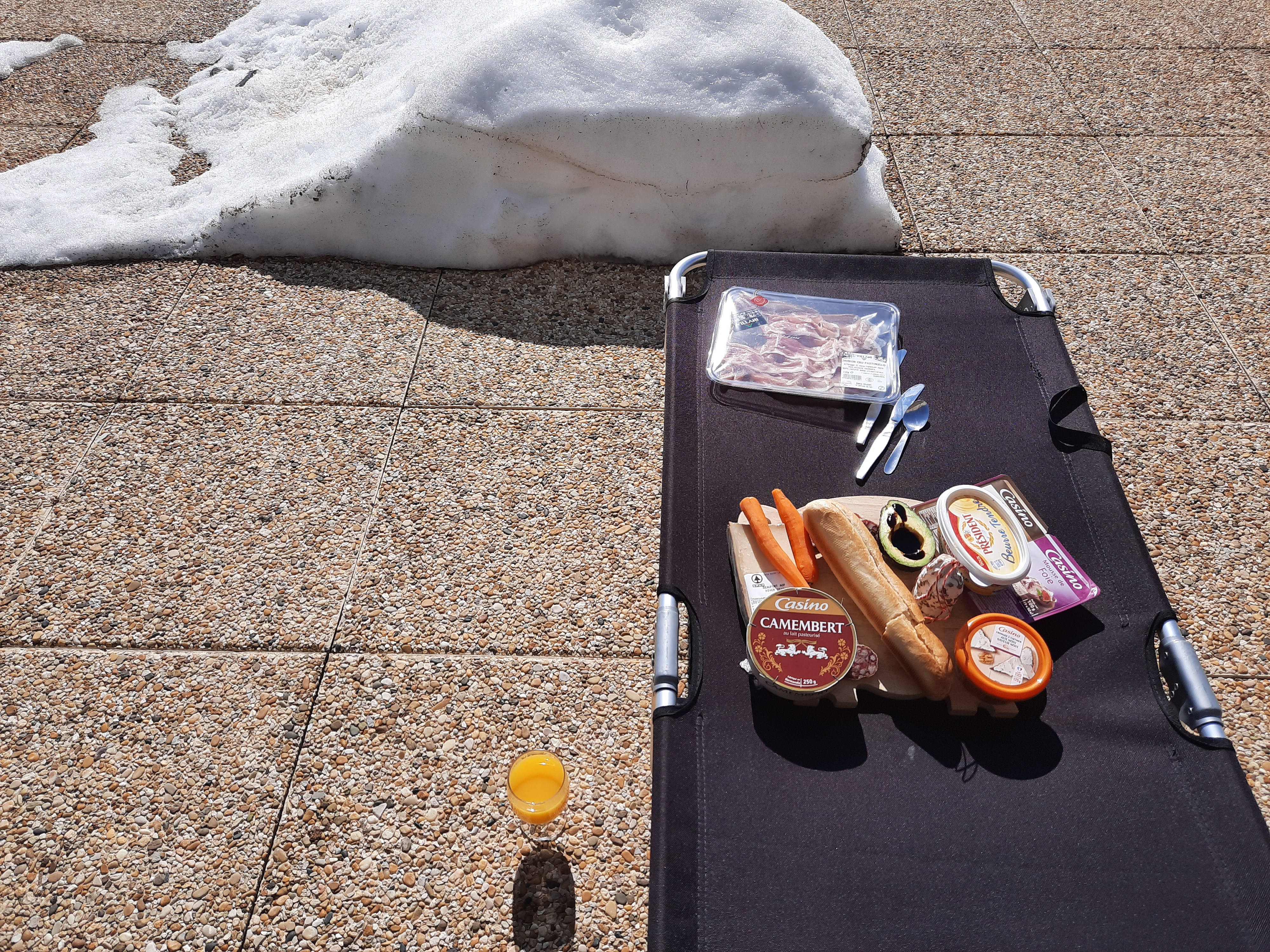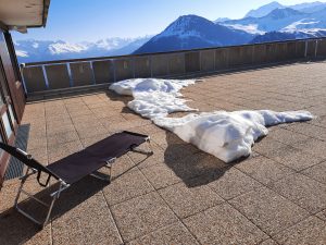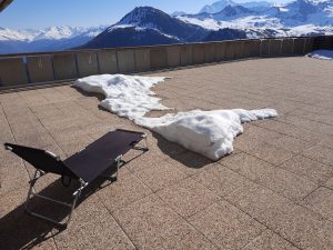 I guess that’s about a sixth of what I see as I look up. That’s the first time in the last seven weeks that there’s been that carpet of low cloud down in the valley. Most days I think the early sun has actually been too strong, and the air down there too dry for that though over a whole year it’s a frequent pattern. So the aesthetics up here are stunning. When I arrived the snow on the terrace was chest high and I wouldn’t have been able to get out there with binoculars the first few days as the snow was less than a foot from the windows, door and walls. As the sun blasted down, day after day, the snow receded. The first week created enough space to squeeze out of the door and this auto-excavation. I think some rather more impressive artefacts are being revealed from high Norwegian passes as climate change excavates them. This was not quite in that league.