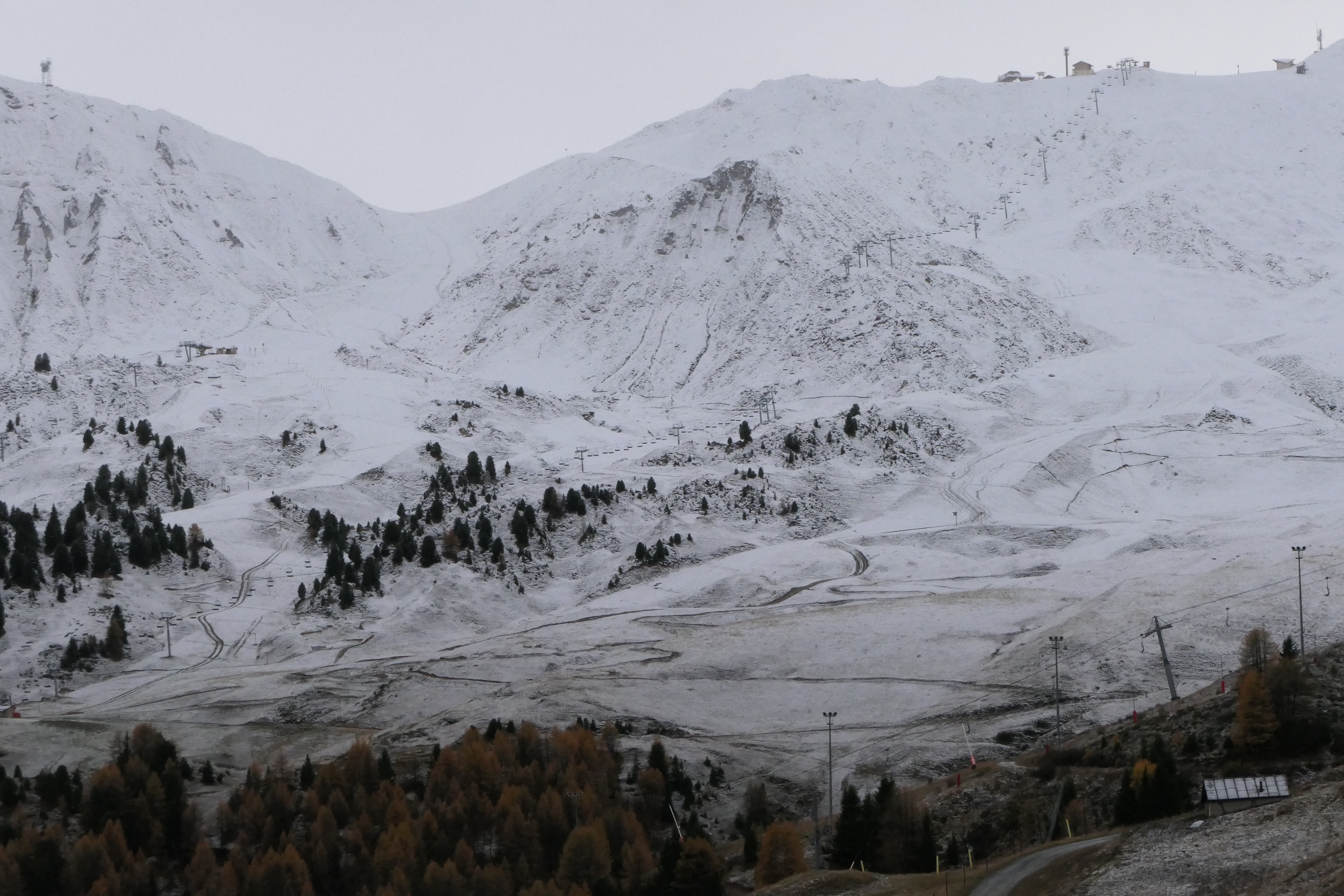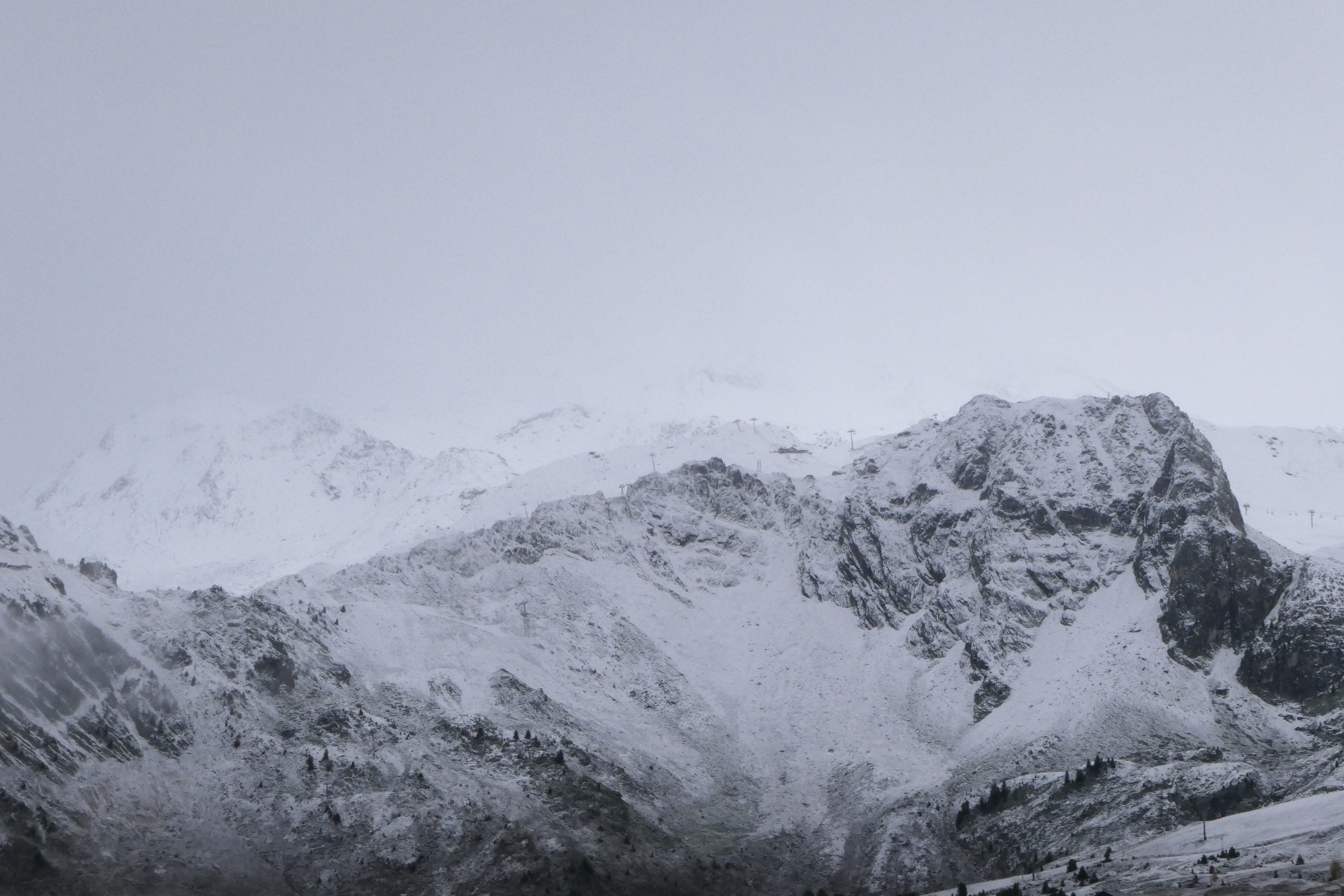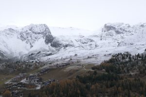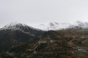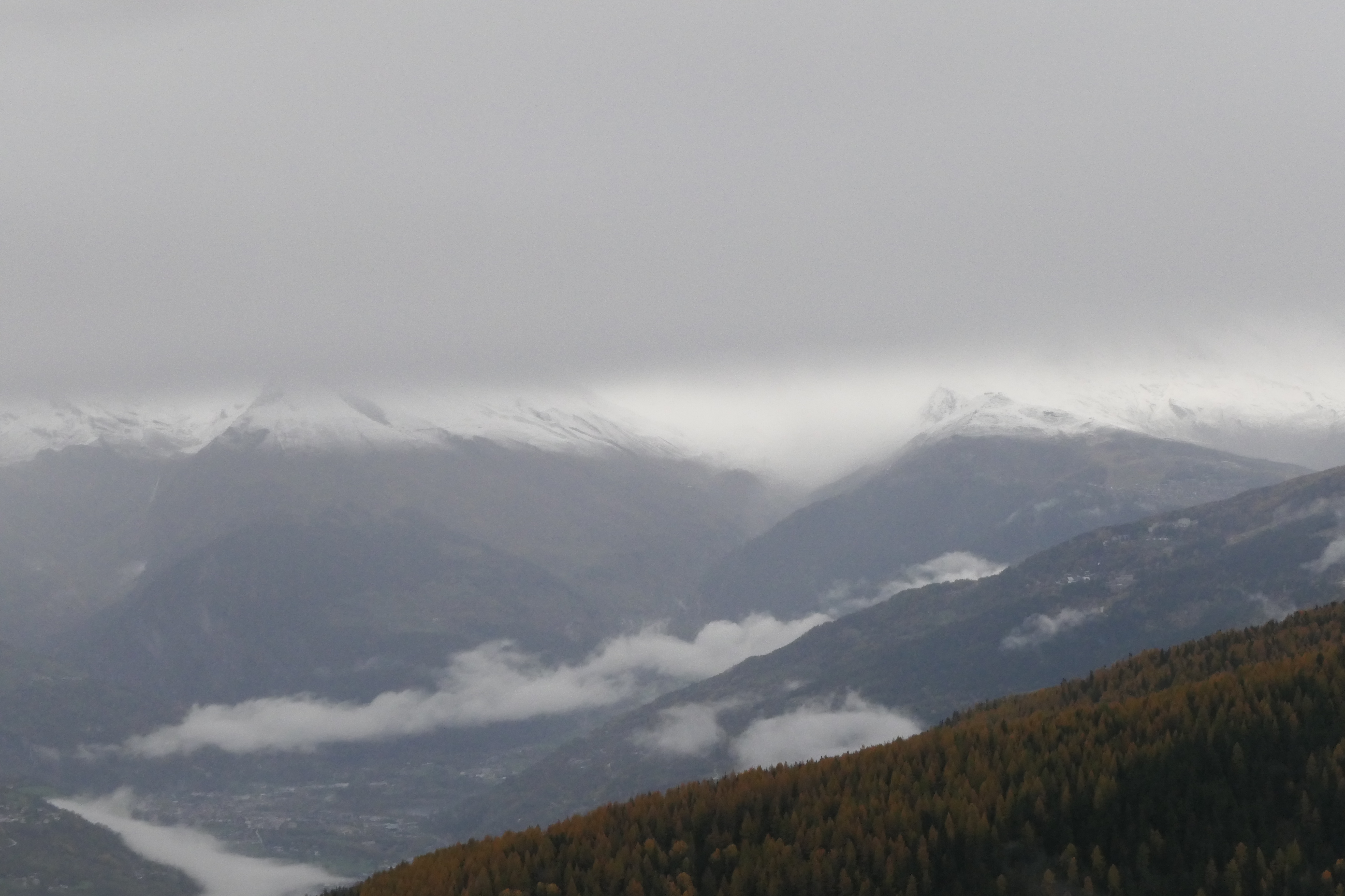 When I got up this morning (3.xi.19) all the higher peaks were covered in snow. For an hour or so I got on with things and just enjoyed the privilege of such a view, then something struck me: it really was so fine that it was why I have a good camera. That view above is a telephoto view away toward the head of the valley. I particularly like that effect when the moisture in the air, and the rather dead, grey light through the thick high snow clouds washes out most colour and turns things into indistinct shapes. Here’s some more of the ‘photos as I pulled a fleece on and stepped out onto the terrace. As usual, click on the images and you should get a larger view and can scroll through them. You should see a short explanatory caption of you hover over an image too.