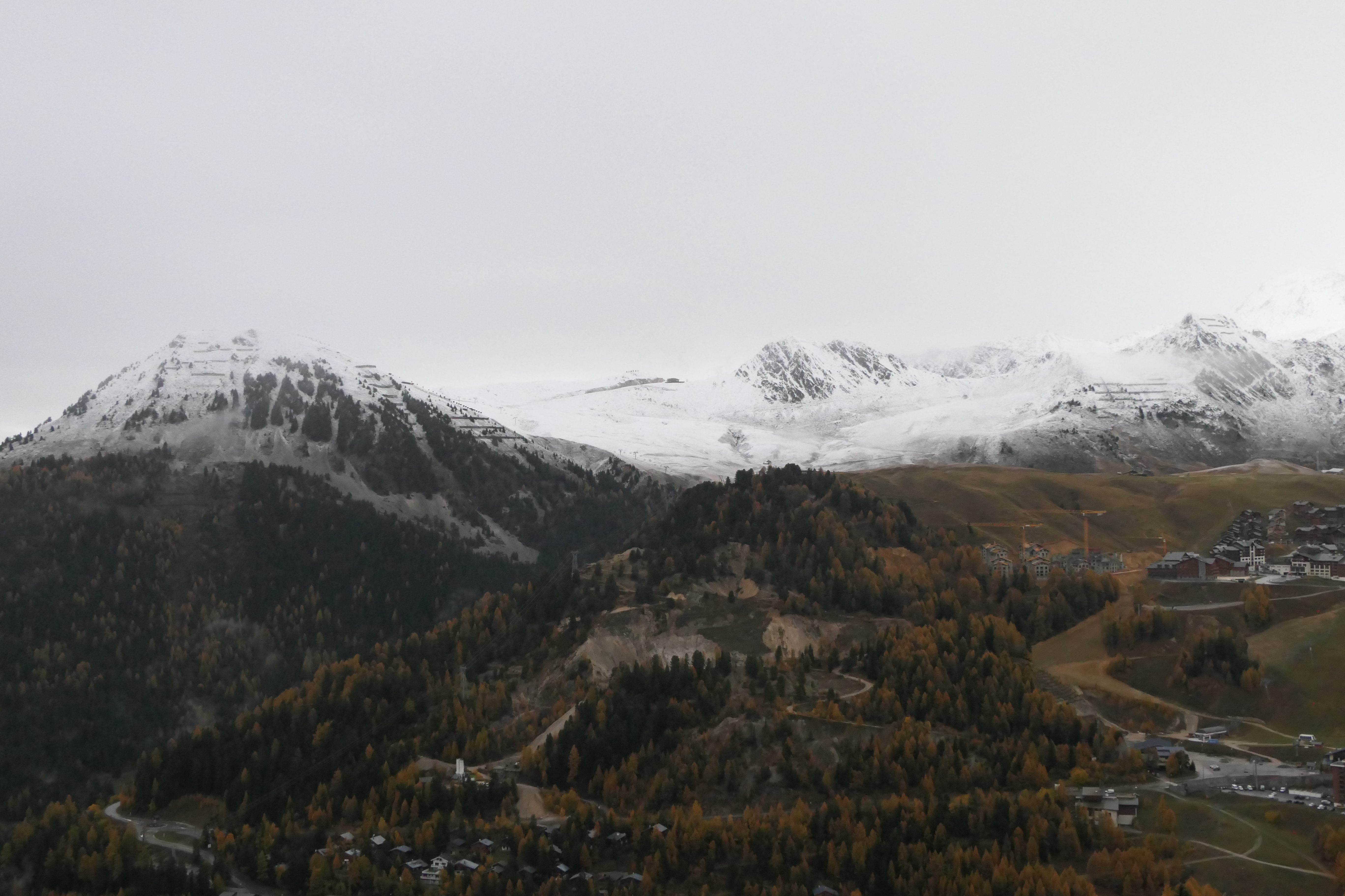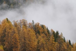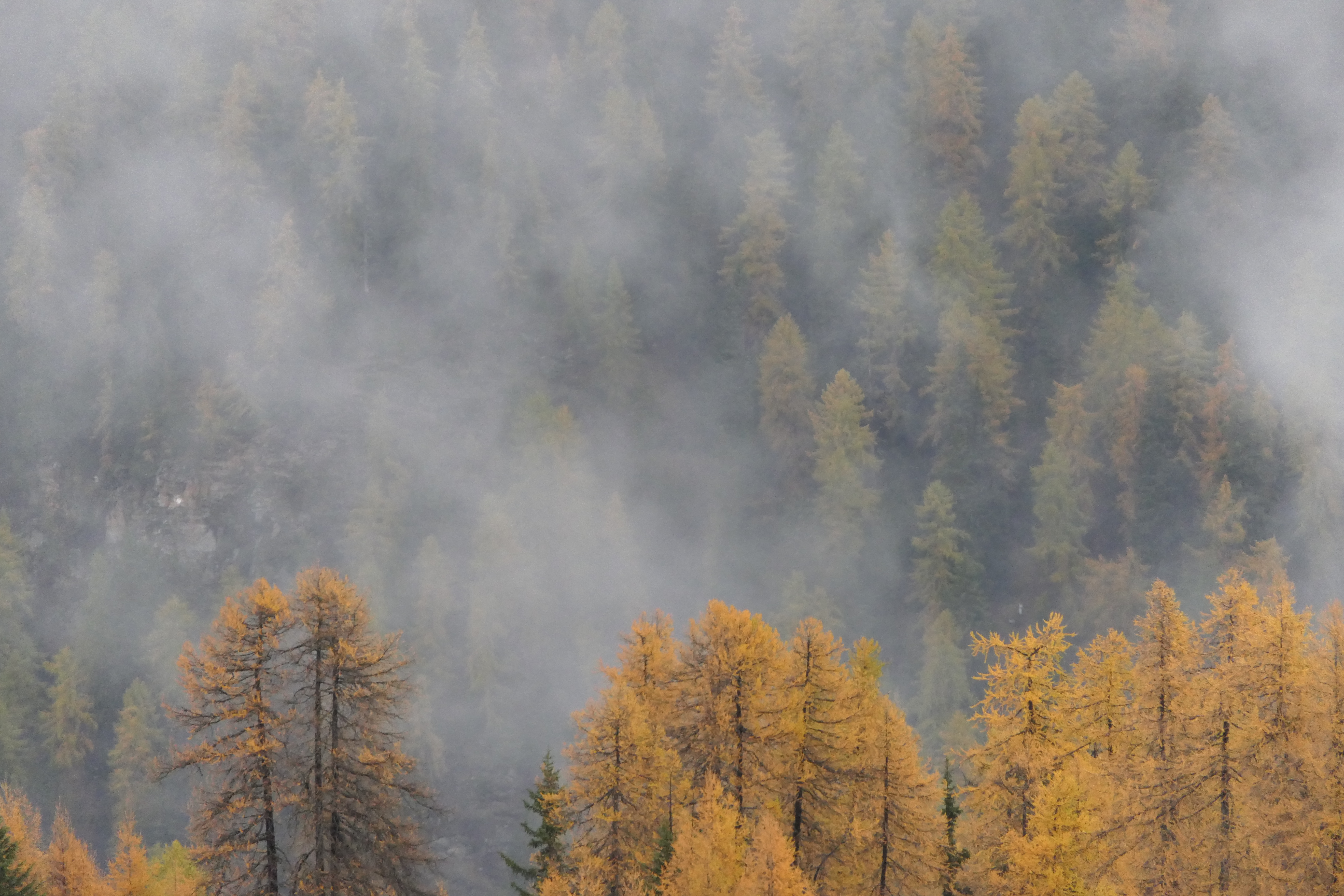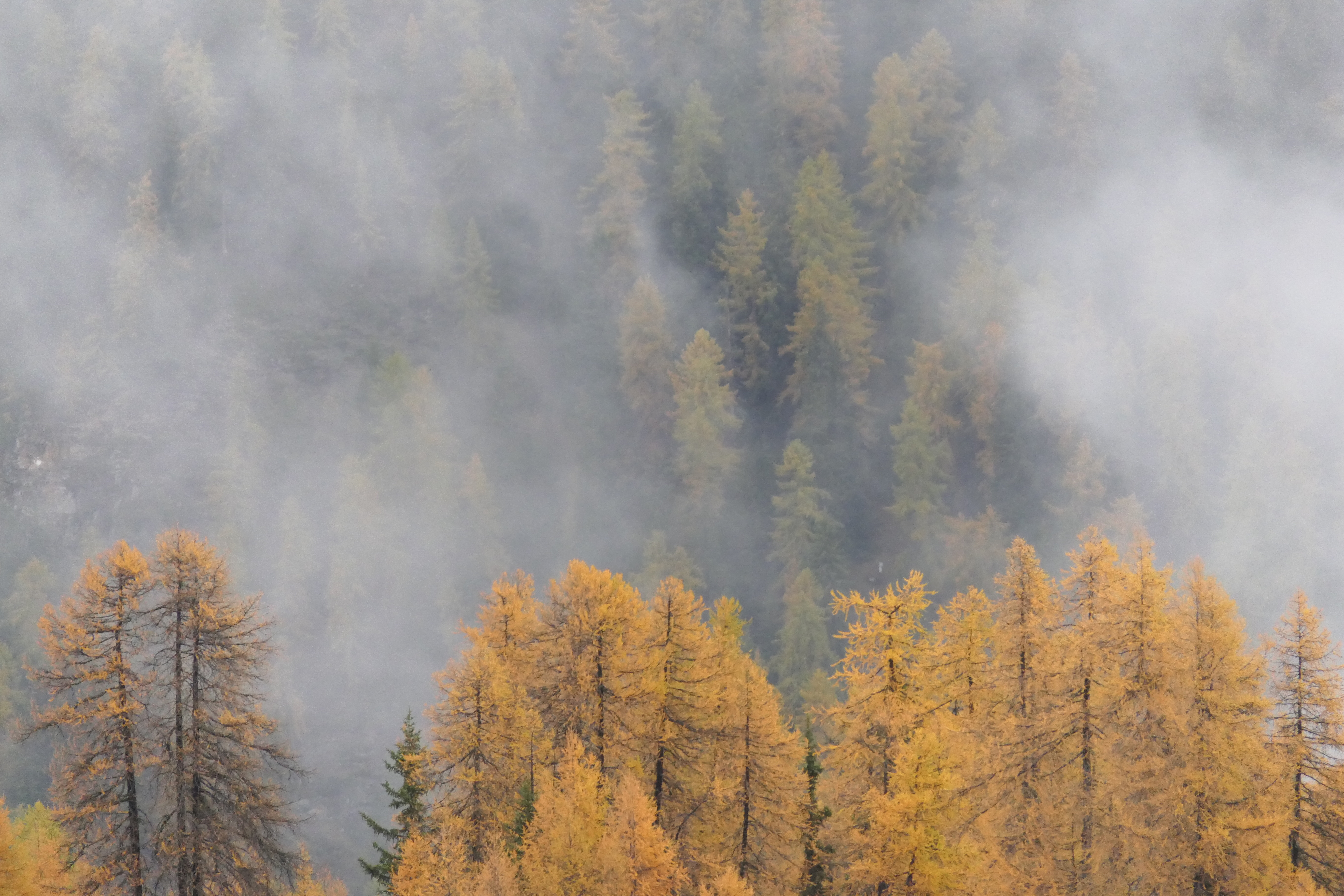 At that point there was a very clear snow line. In the distance it was 500 to 1000m above me I’d guess but looking south there was a light dusting of snow just above me. That meant that our wonderful deciduous conifers were standing out orange and yellow against the clouds and higher snow.