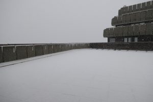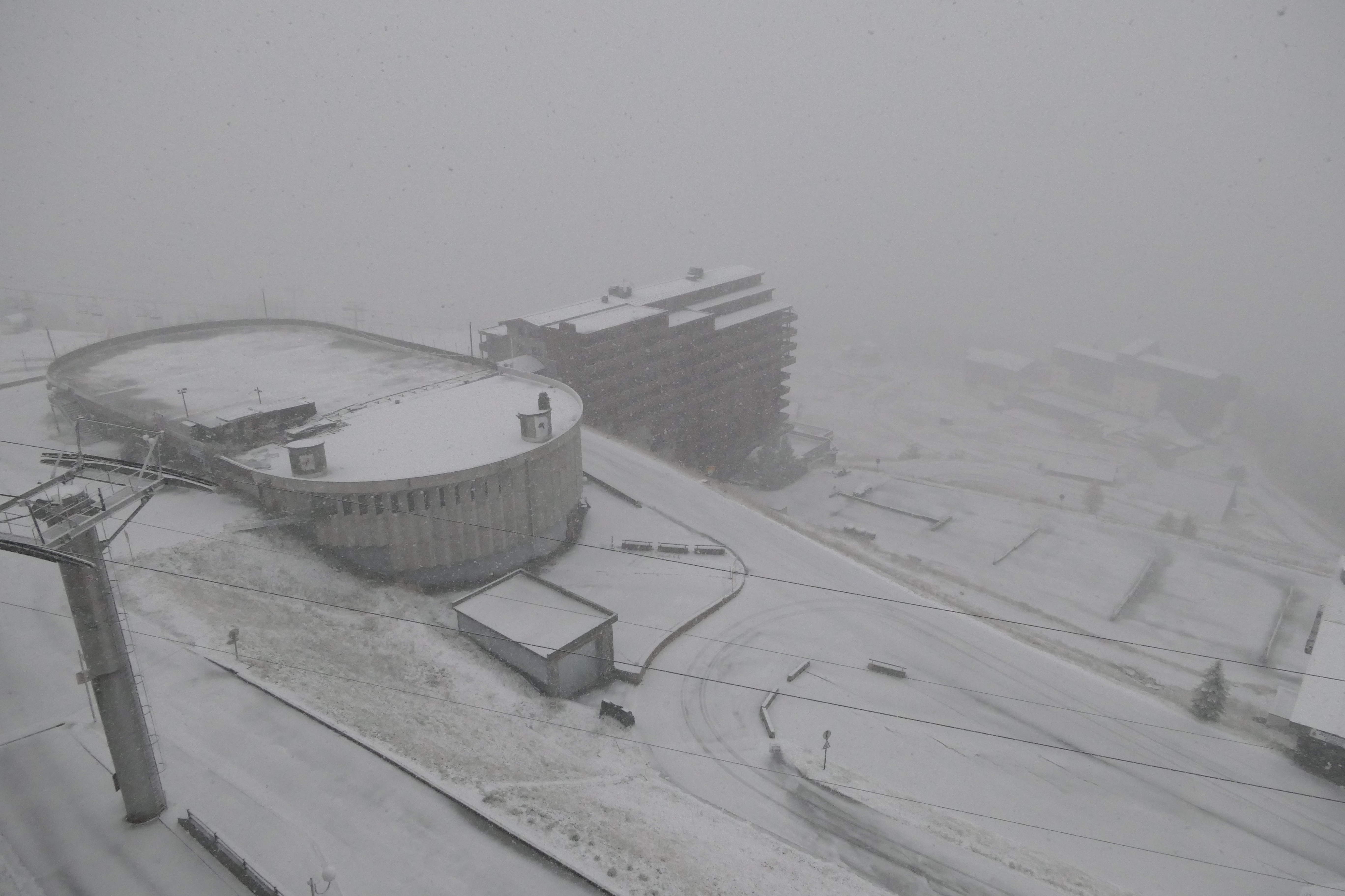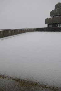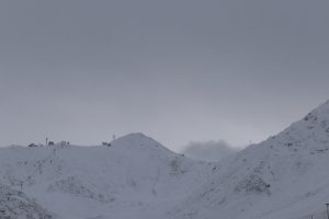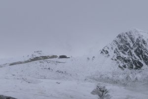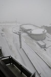 Then it all changed: in fifteen minutes or so, or so it felt, the snow dropped in and the view even below me was all shades of white and grey.