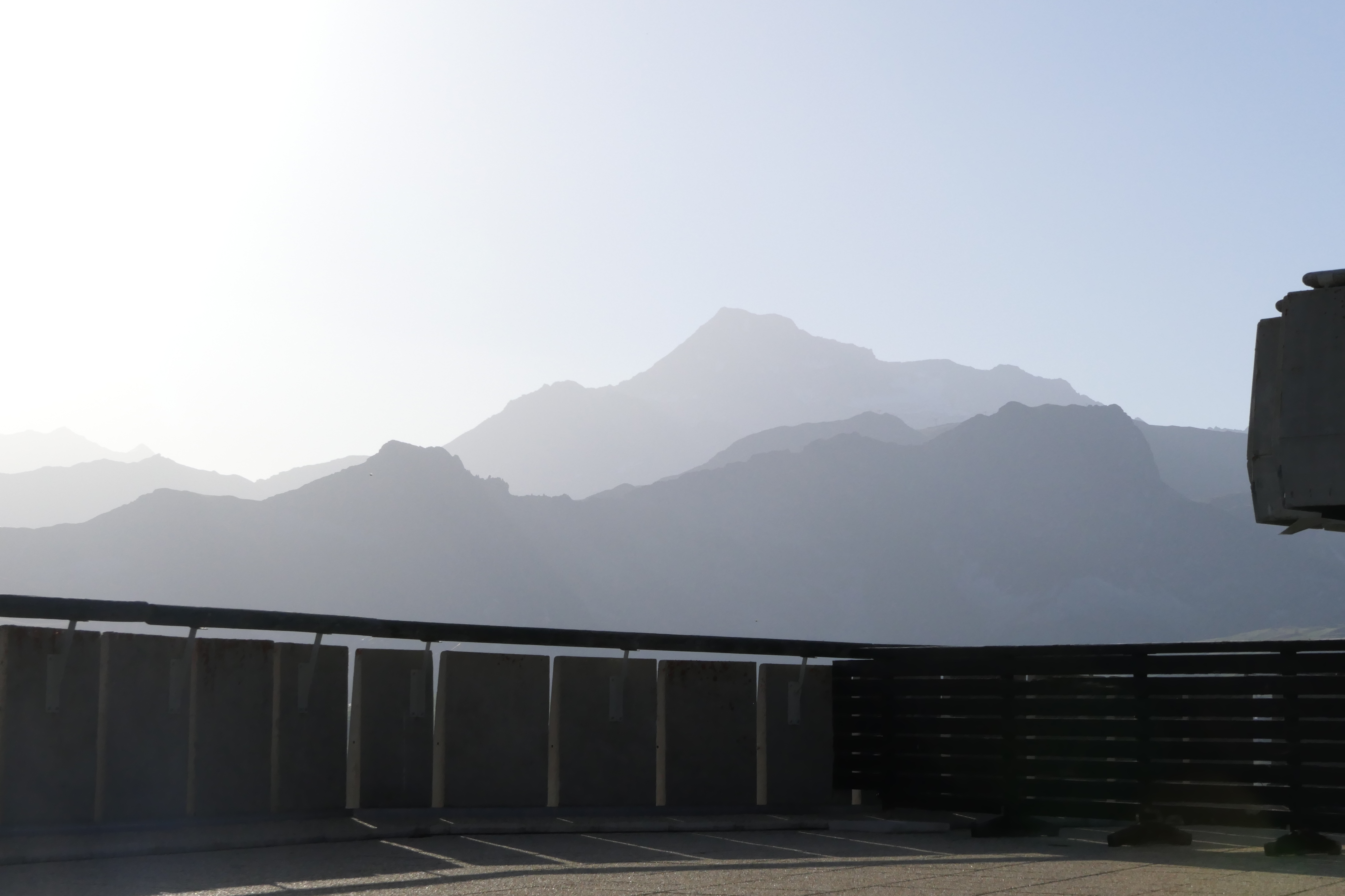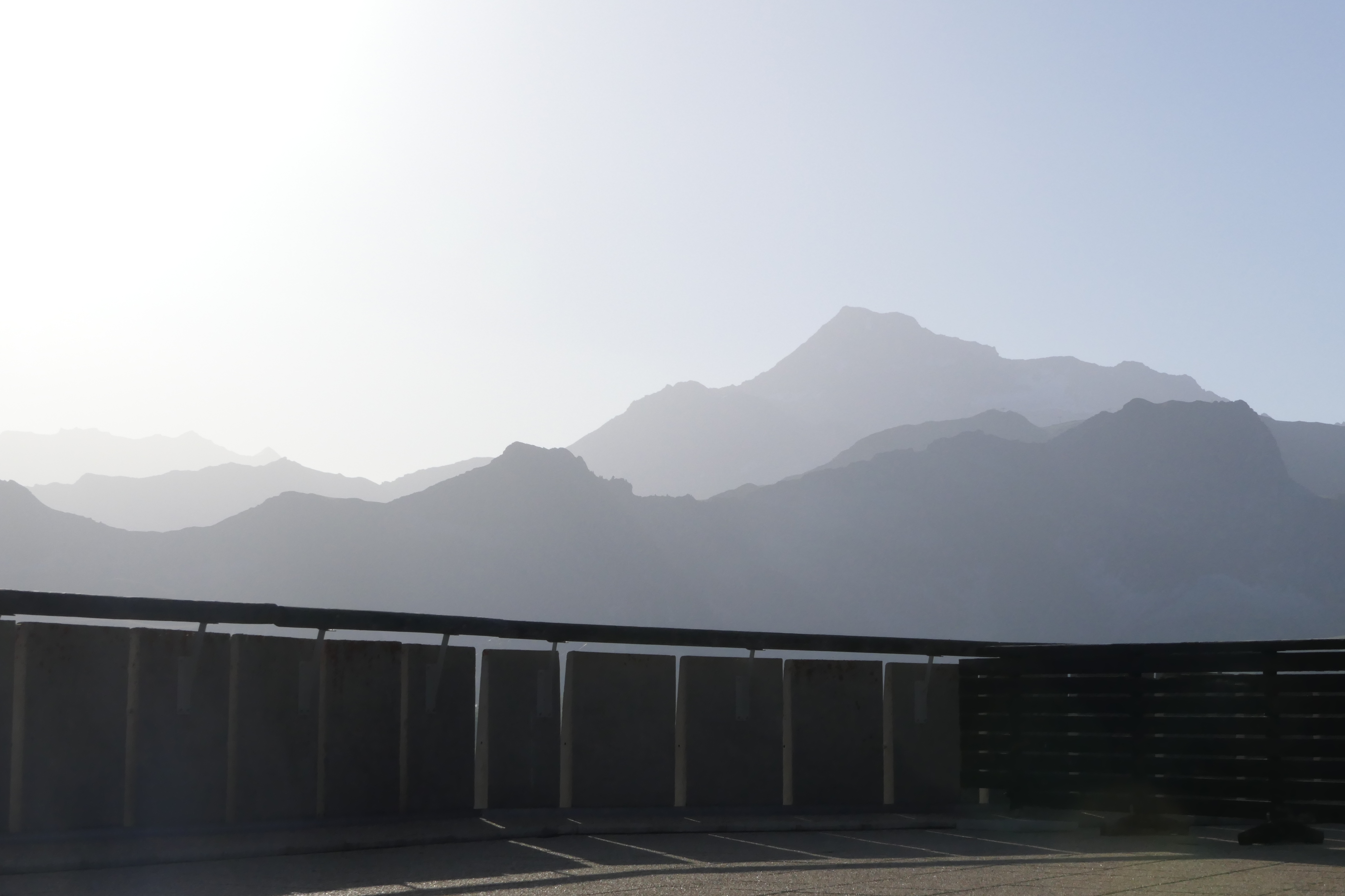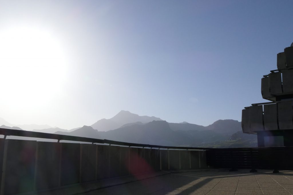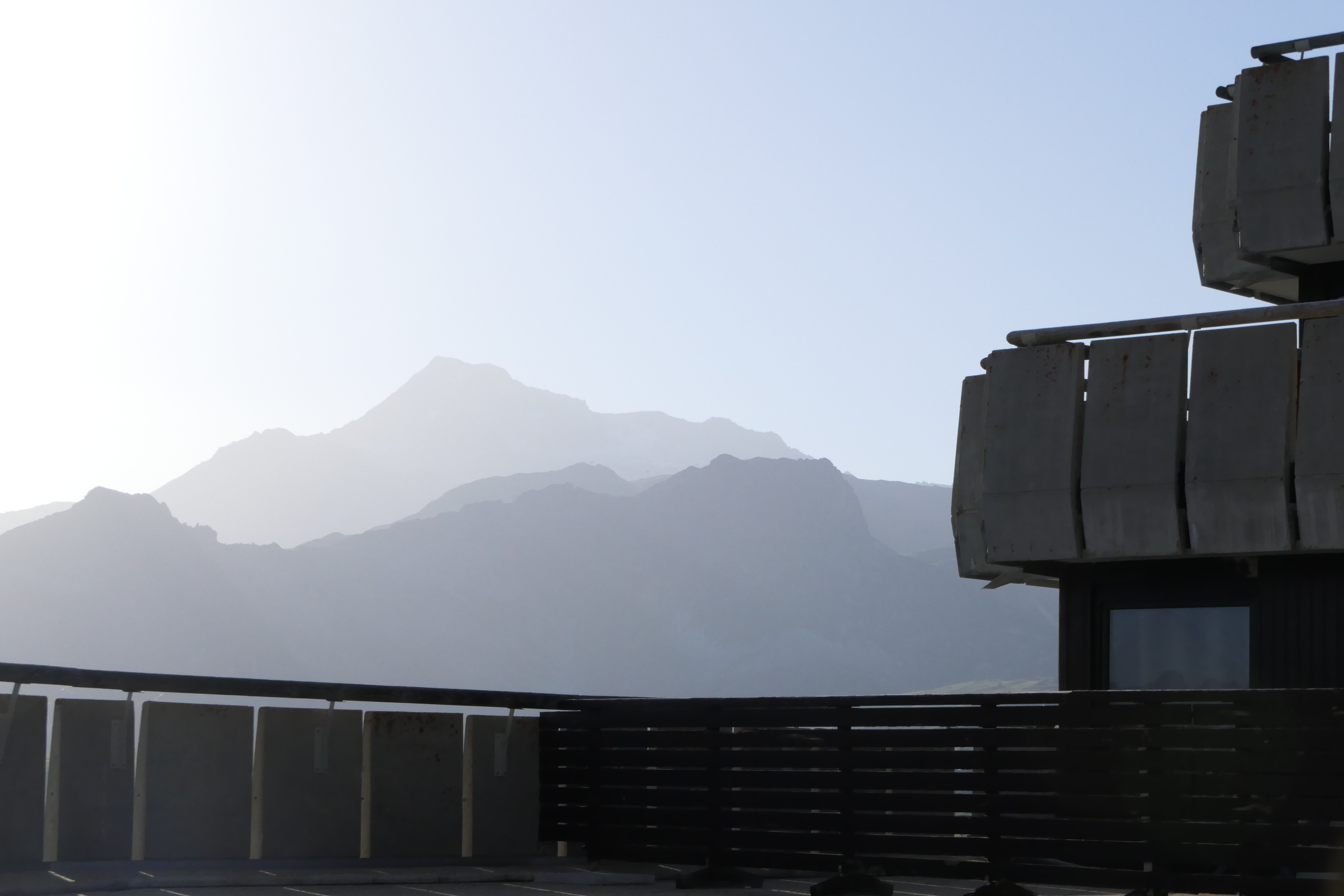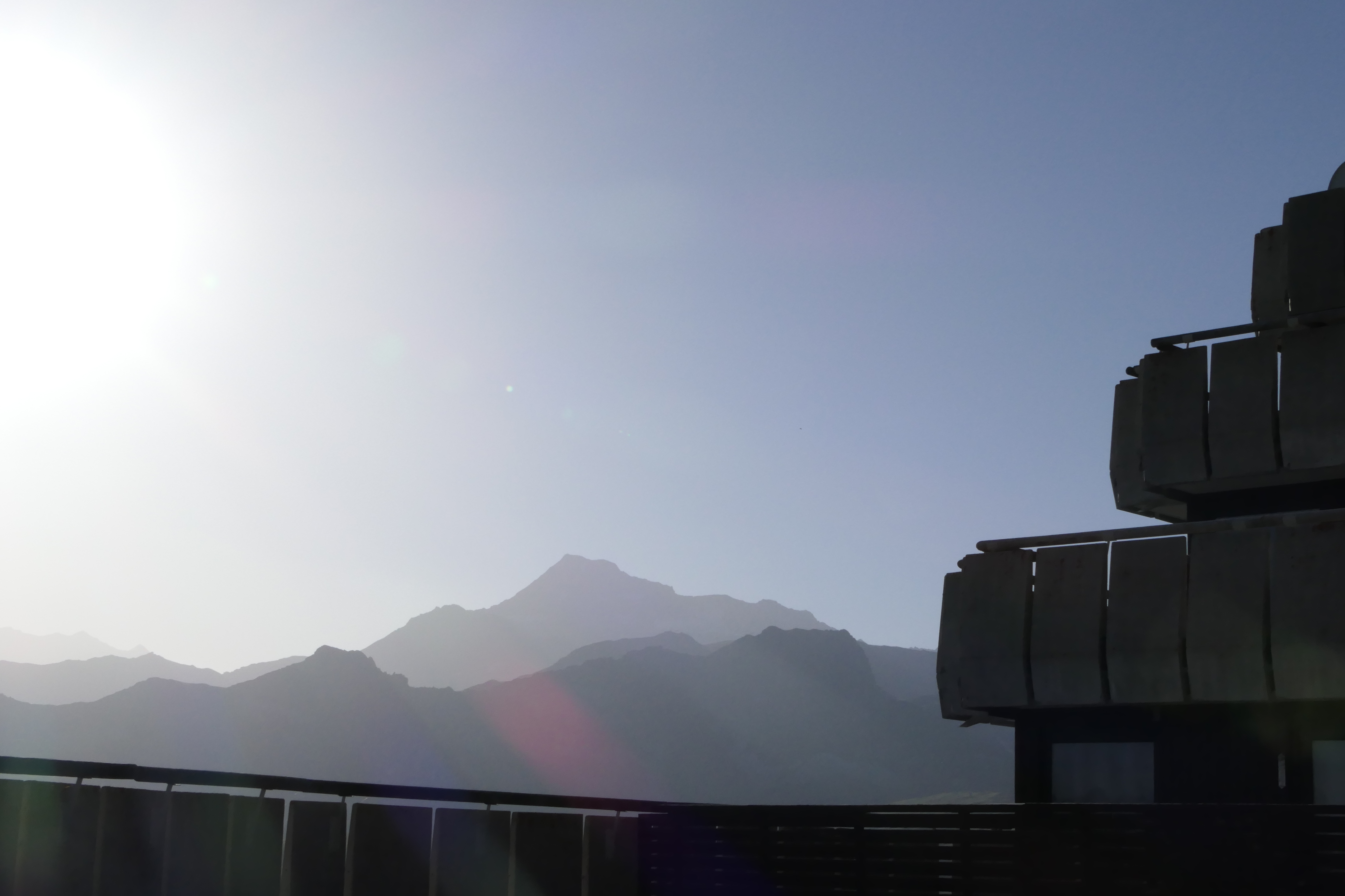 I was squatting there this morning, soaking up some sun, with my eyes closed against it. I was oscillating between pondering my day, task list etc. and something rather more “mindful” I supposed (it’s not my forte). Opening my eyes at some point I was squinting against the sun, still very low but awesome in its relatively little filtered intensity and for a moment or two I just soaked in the silhouettes of the brutalist concrete of Aime 2000 as it rises the other side of the terrace as it does behind me, and the mountains in the distance. I thought I should try to share!