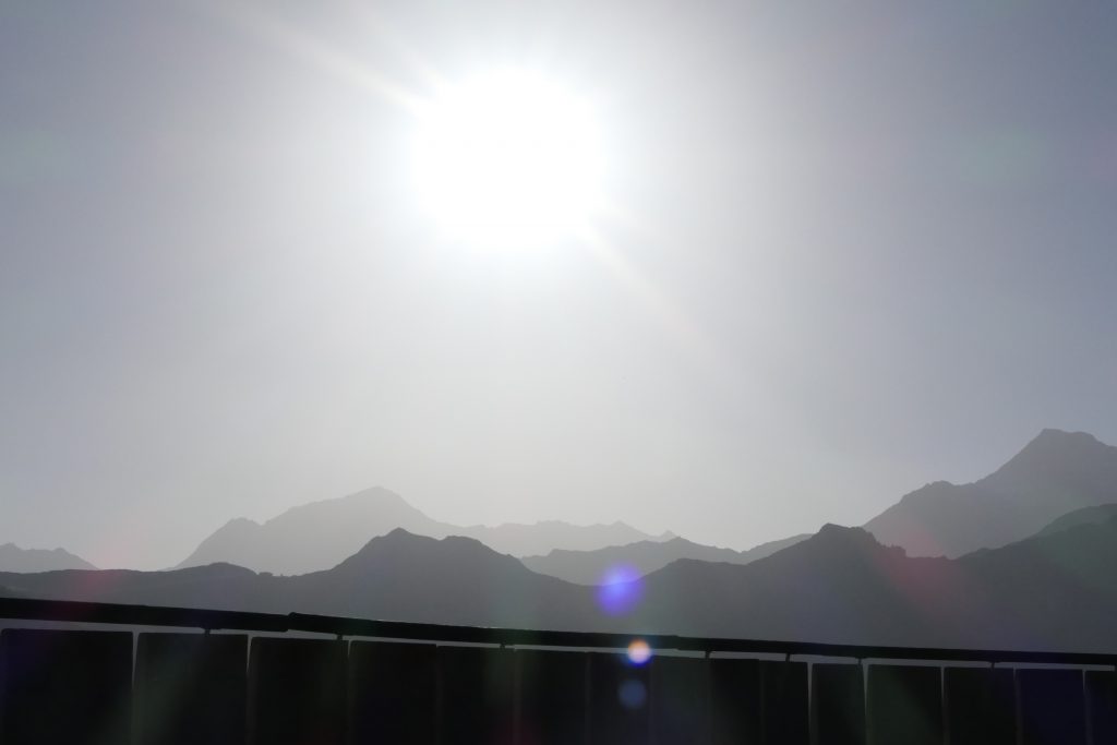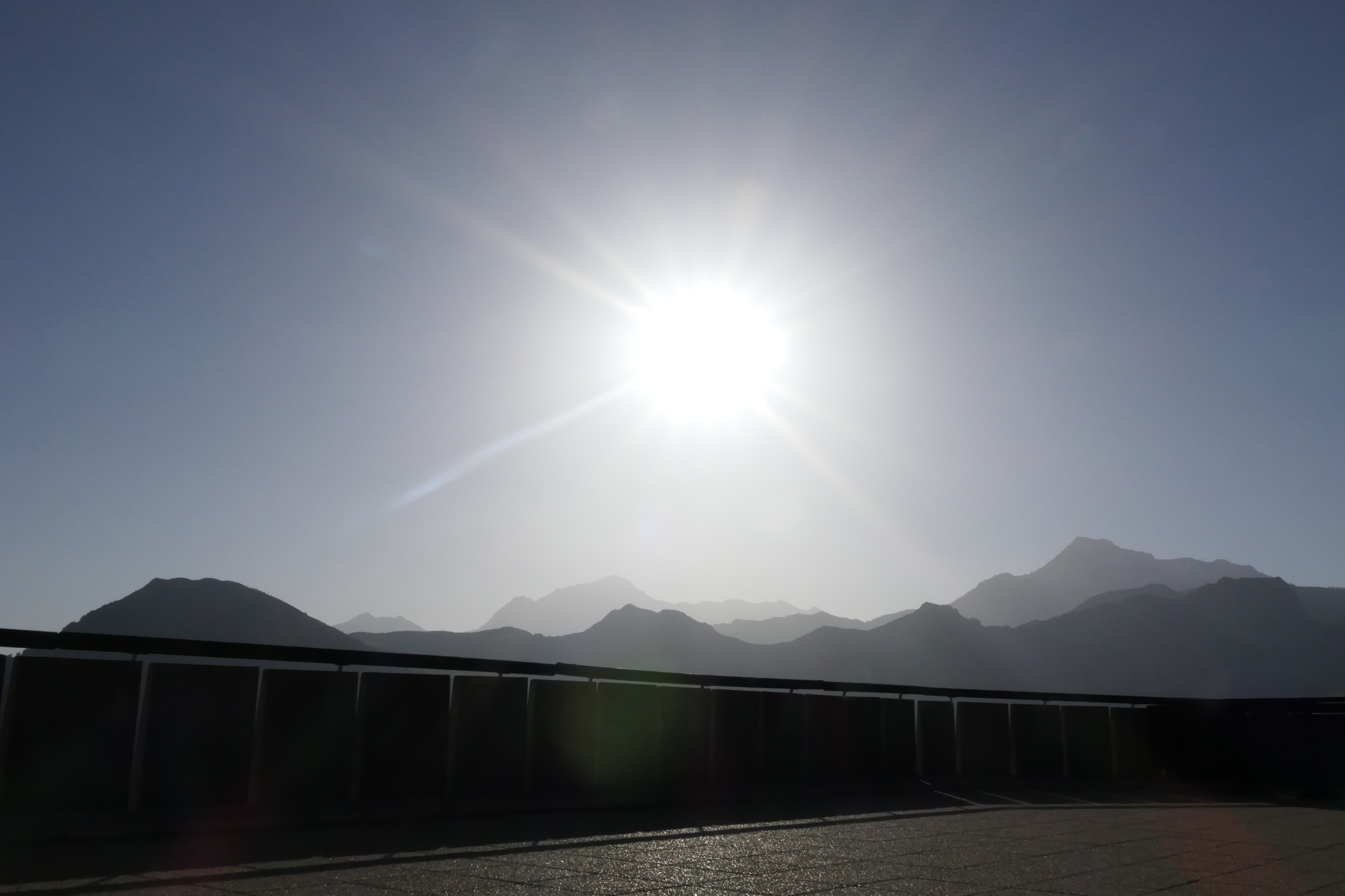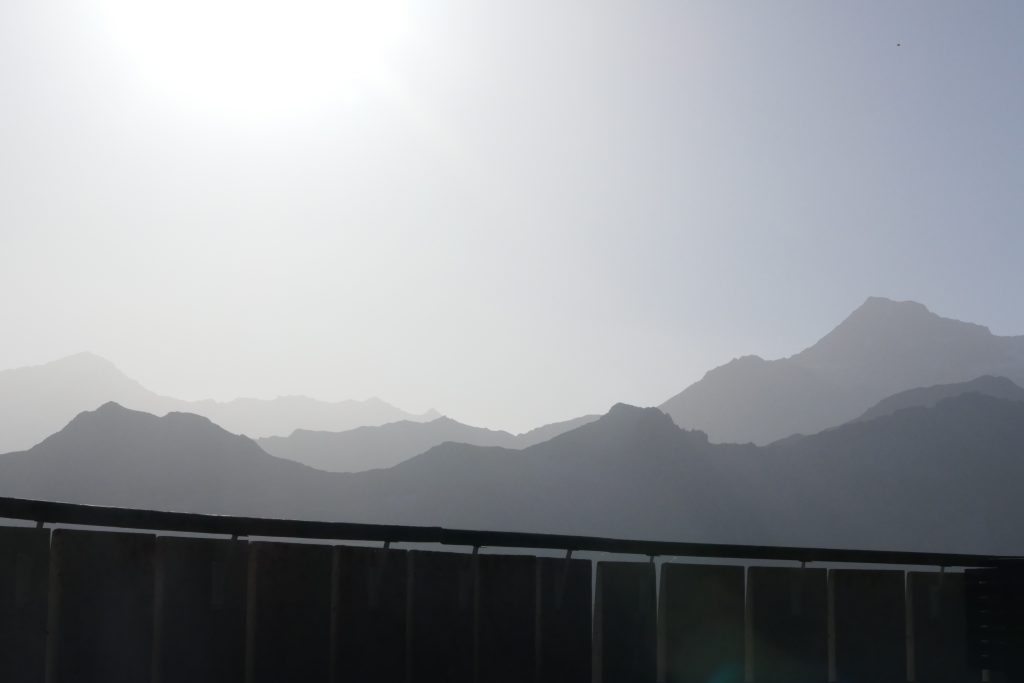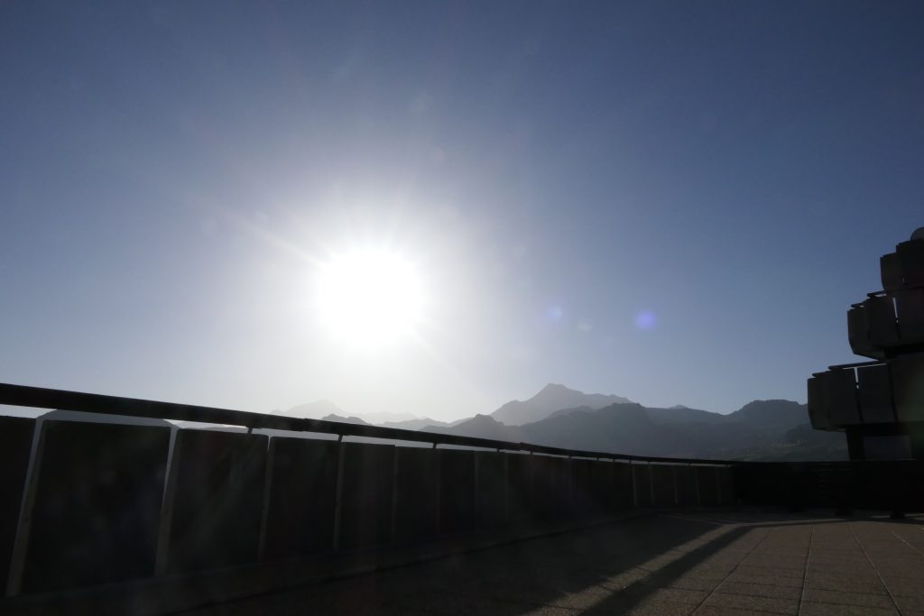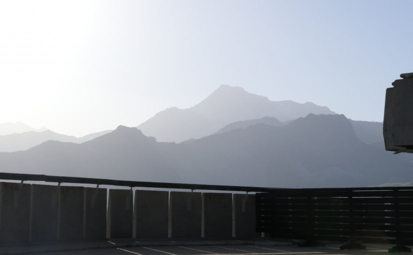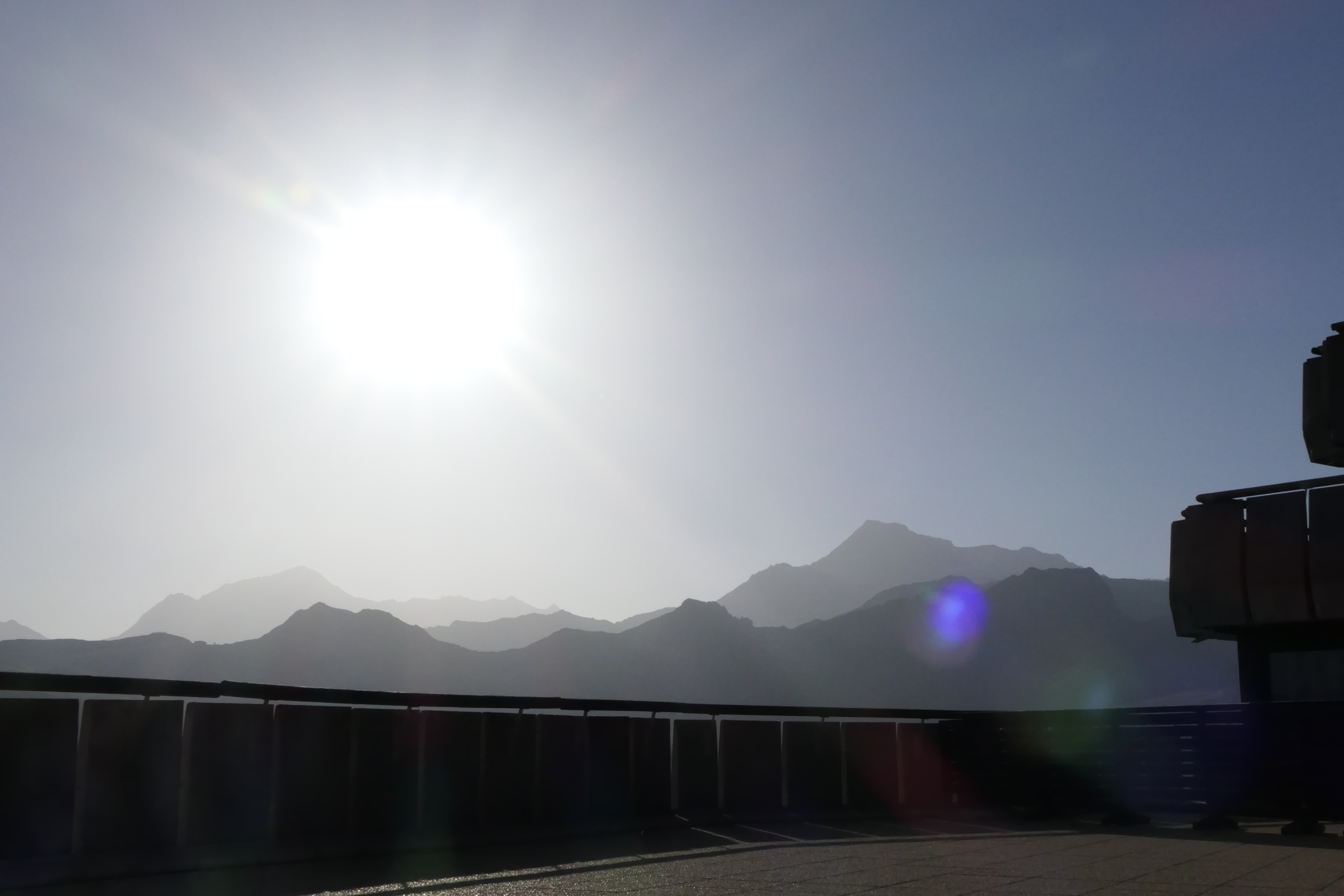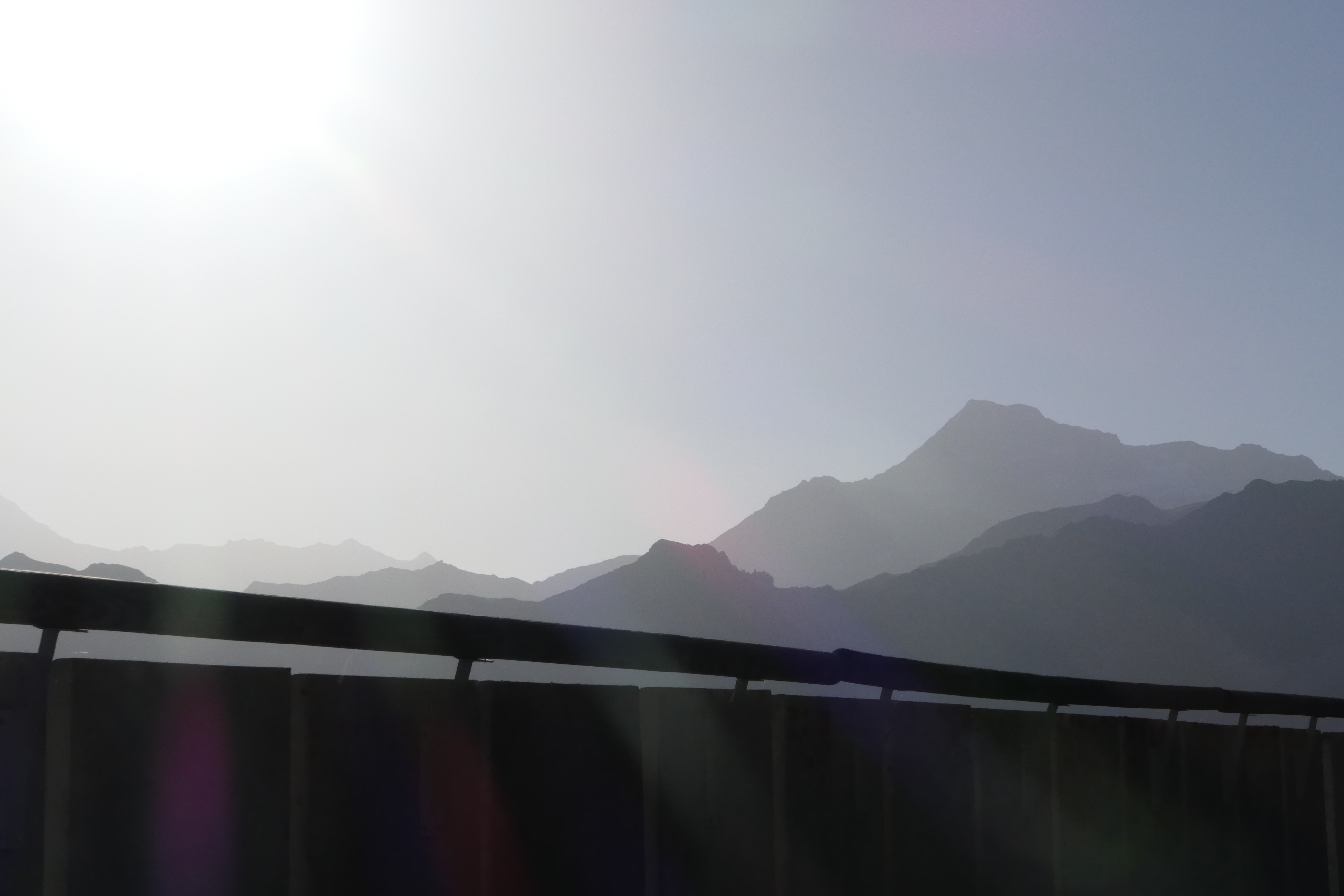 I was squatting there this morning, soaking up some sun, with my eyes closed against it. I was oscillating between pondering my day, task list etc. and something rather more “mindful” I supposed (it’s not my forte). Opening my eyes at some point I was squinting against the sun, still very low but awesome in its relatively little filtered intensity and for a moment or two I just soaked in the silhouettes of the brutalist concrete of Aime 2000 as it rises the other side of the terrace as it does behind me, and the mountains in the distance. I thought I should try to share!