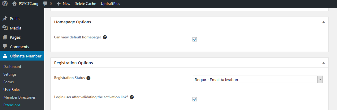 One thing that’s new for me is to require people to subscribe to post comments on this blog and I’ve used the free Ultimate Member plugin to handle that. One thing there that took quite a lot of sleuthing to work out was how you force subscribers to validate their Emails. I think the setting is ridiculously hidden and I had assumed that if you activated the Email template asking people to validate their Email address that requirement would be set automatically. I found the answer eventually at https://wordpress.org/support/topic/registration-confirmation-email-is-not-sent-2/ you set that it in the in the User Roles section of the Ultimate Member menu entries in the WordPress administration panel: